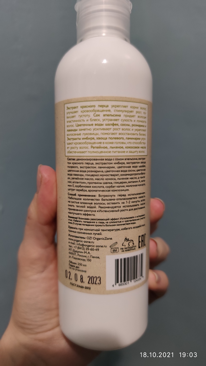 OrganicZone Бальзам "Интенсивный рост" против выпадения и для роста волос