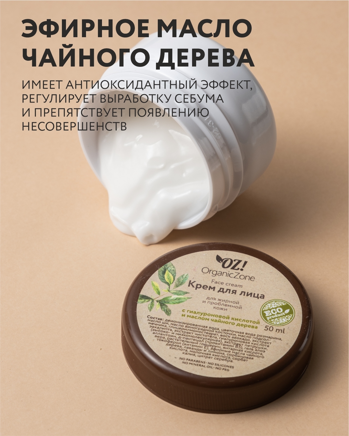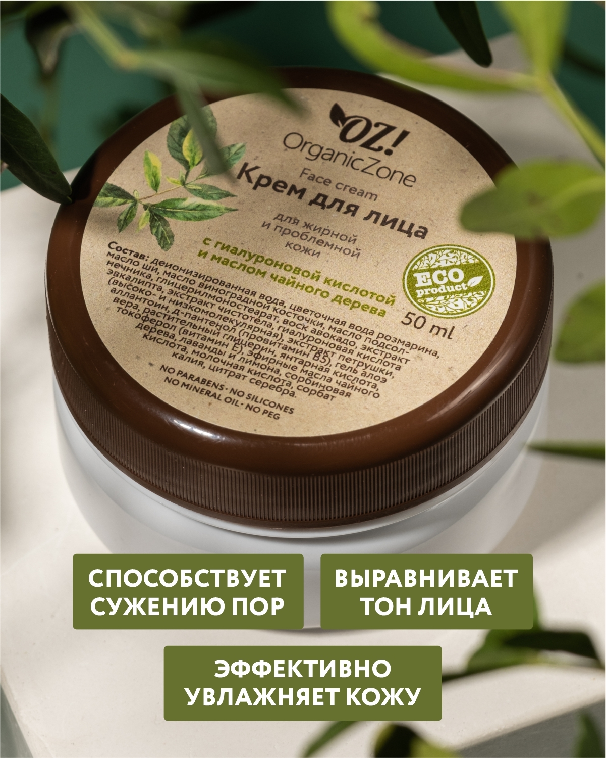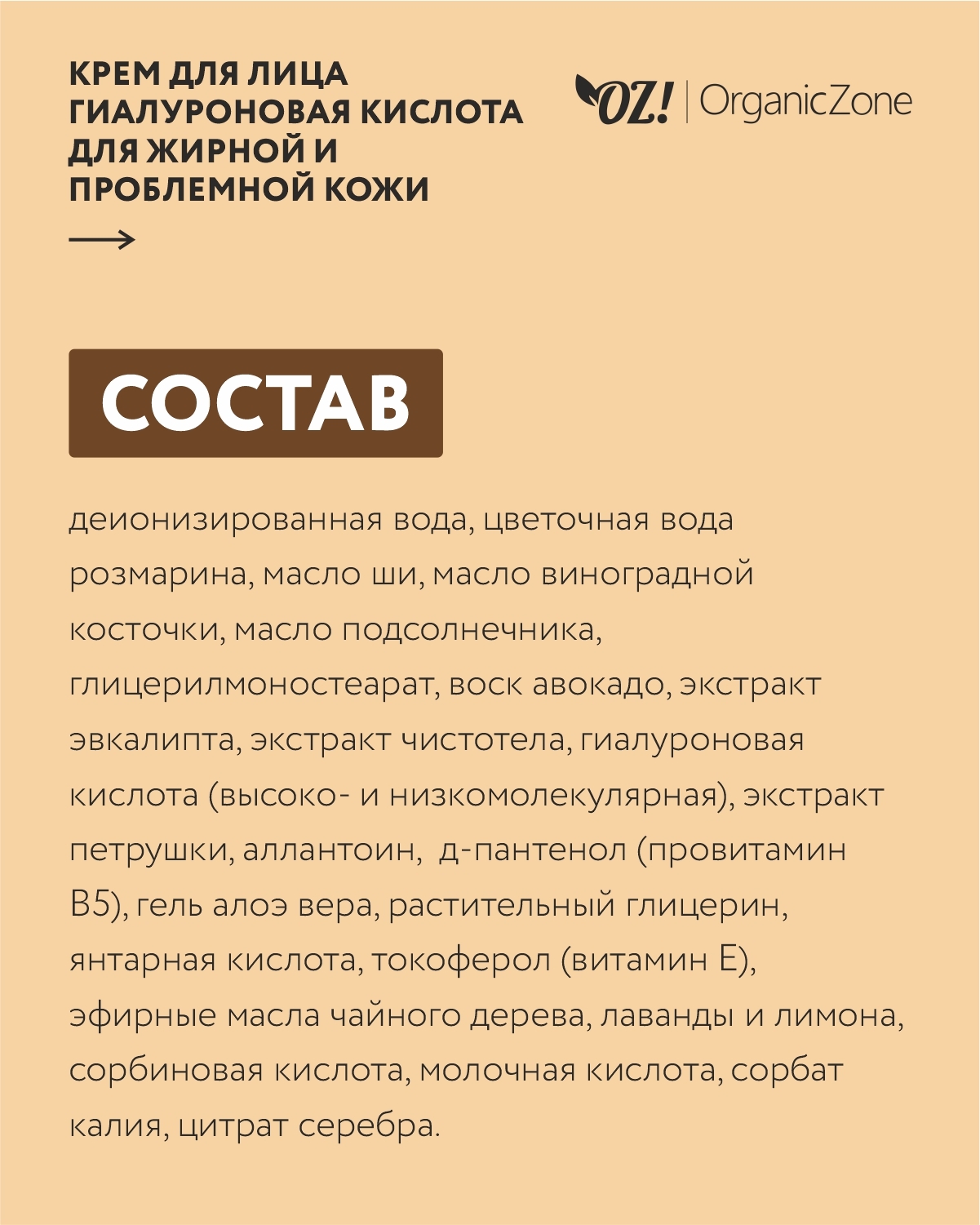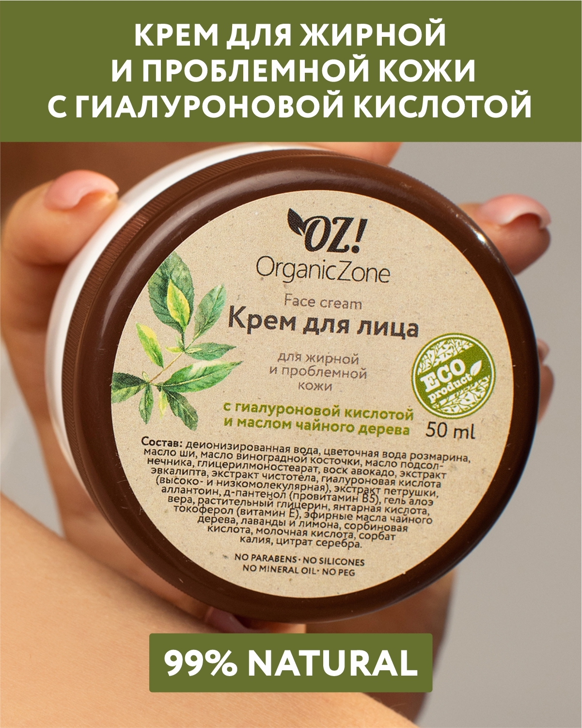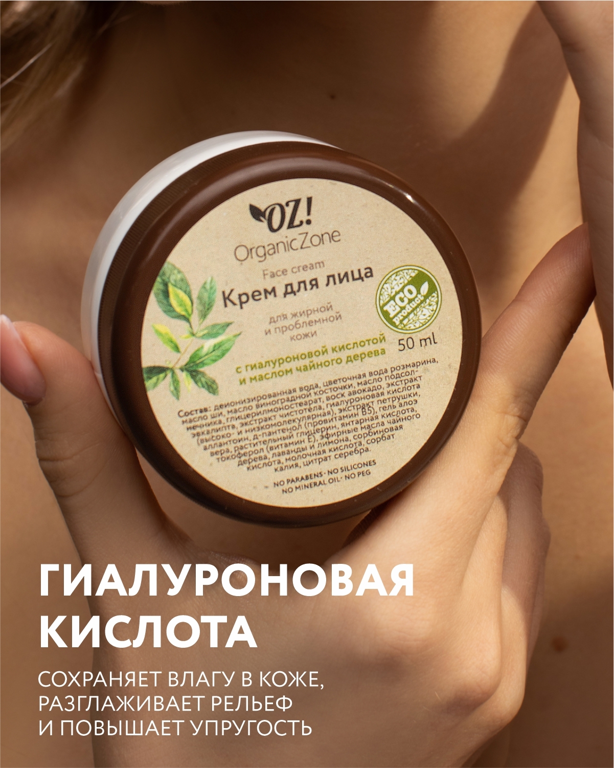OZ!OrganicZone Крем для лица для жирной и комбинированной кожи с гиалуроновой кислотой