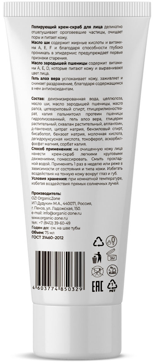 OrganicZone Detox Полирующий крем-скраб для лица с маслами ши и зародышей пшеницы