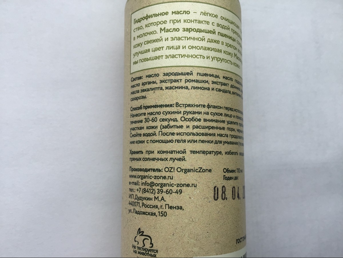 OrganicZone Гидрофильное масло для зрелой кожи "Лимон и жасмин"