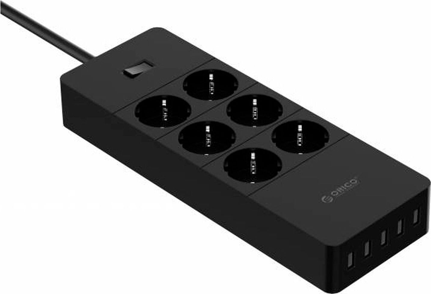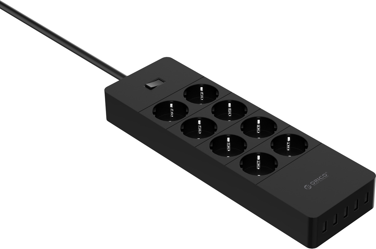 Сетевой фильтр (удлинитель) Orico, 8 розеток, 5xUSB Type-A, 16А, 1.5 м, черный