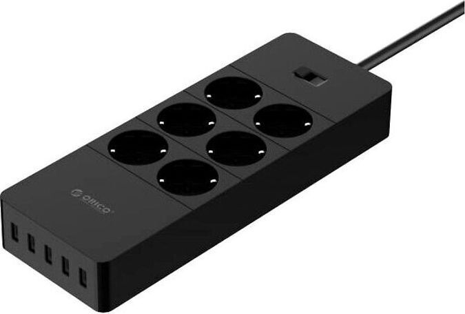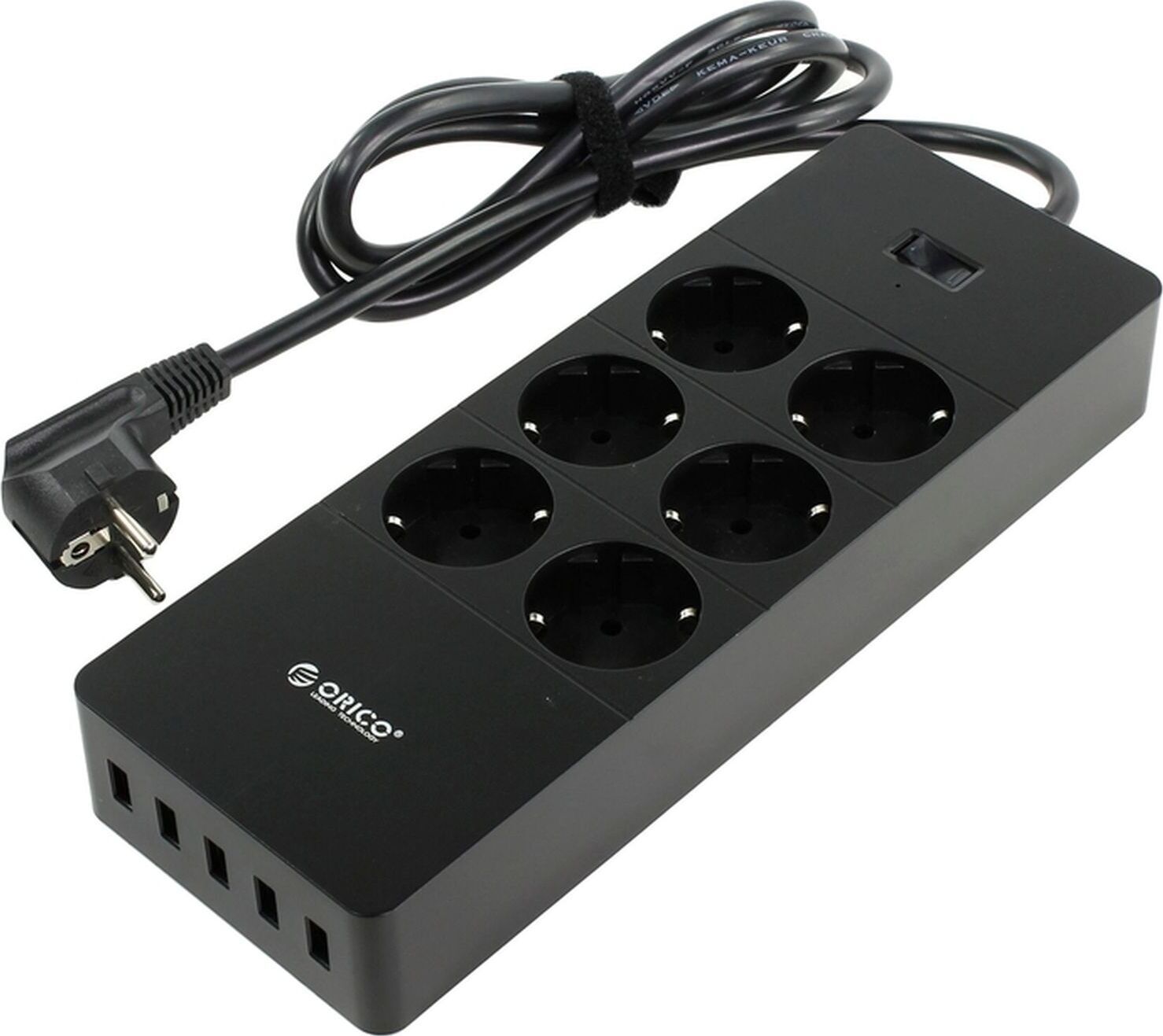 Сетевой фильтр Orico HPC, 6 розеток, 5xUSB Type-A, 16 А, 1.5 м, черный