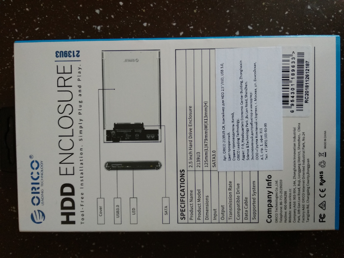Внешний корпус для жесткого диска 2.5" ORICO 2139U3-CR, прозрачный