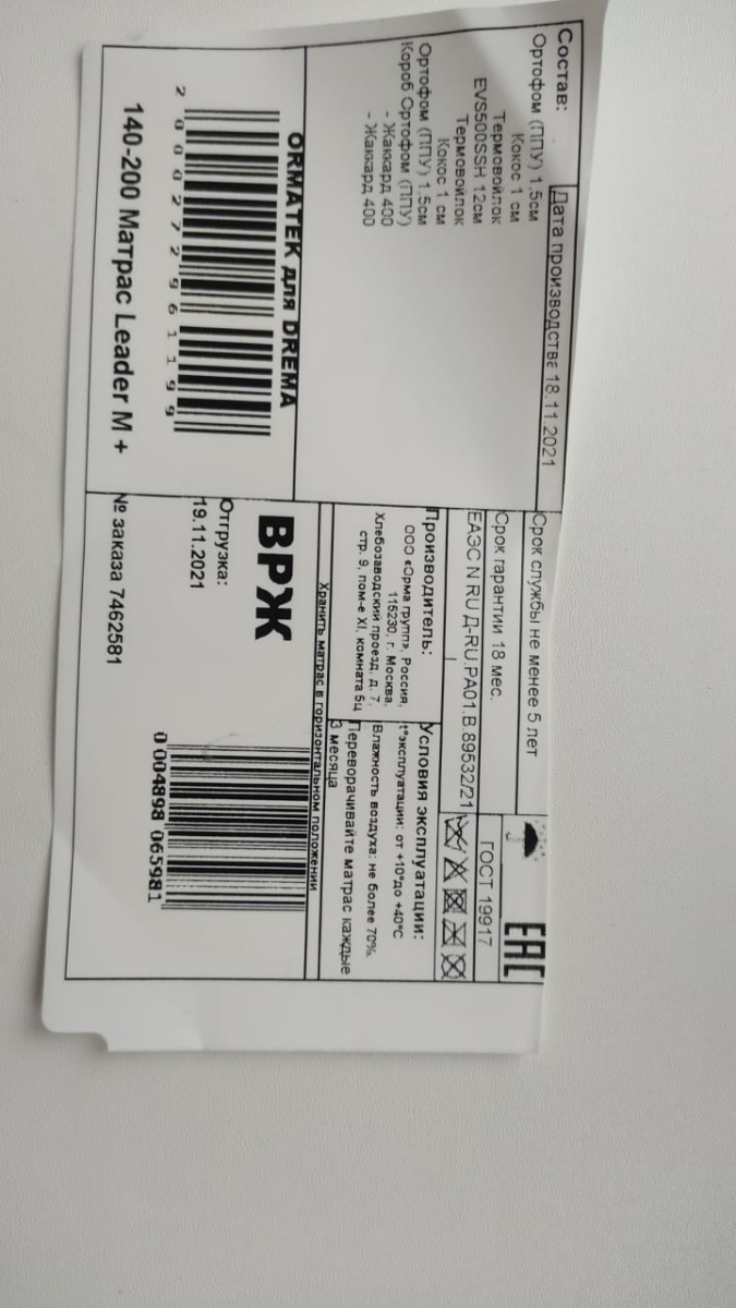 Защитный чехол Орматек Dry Big (Трикотажная ткань) 120x195