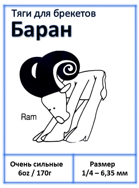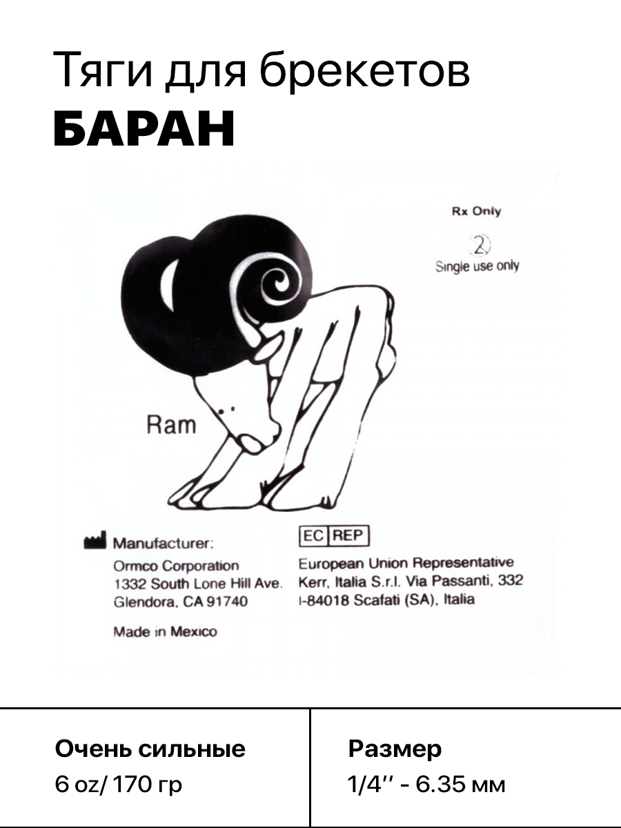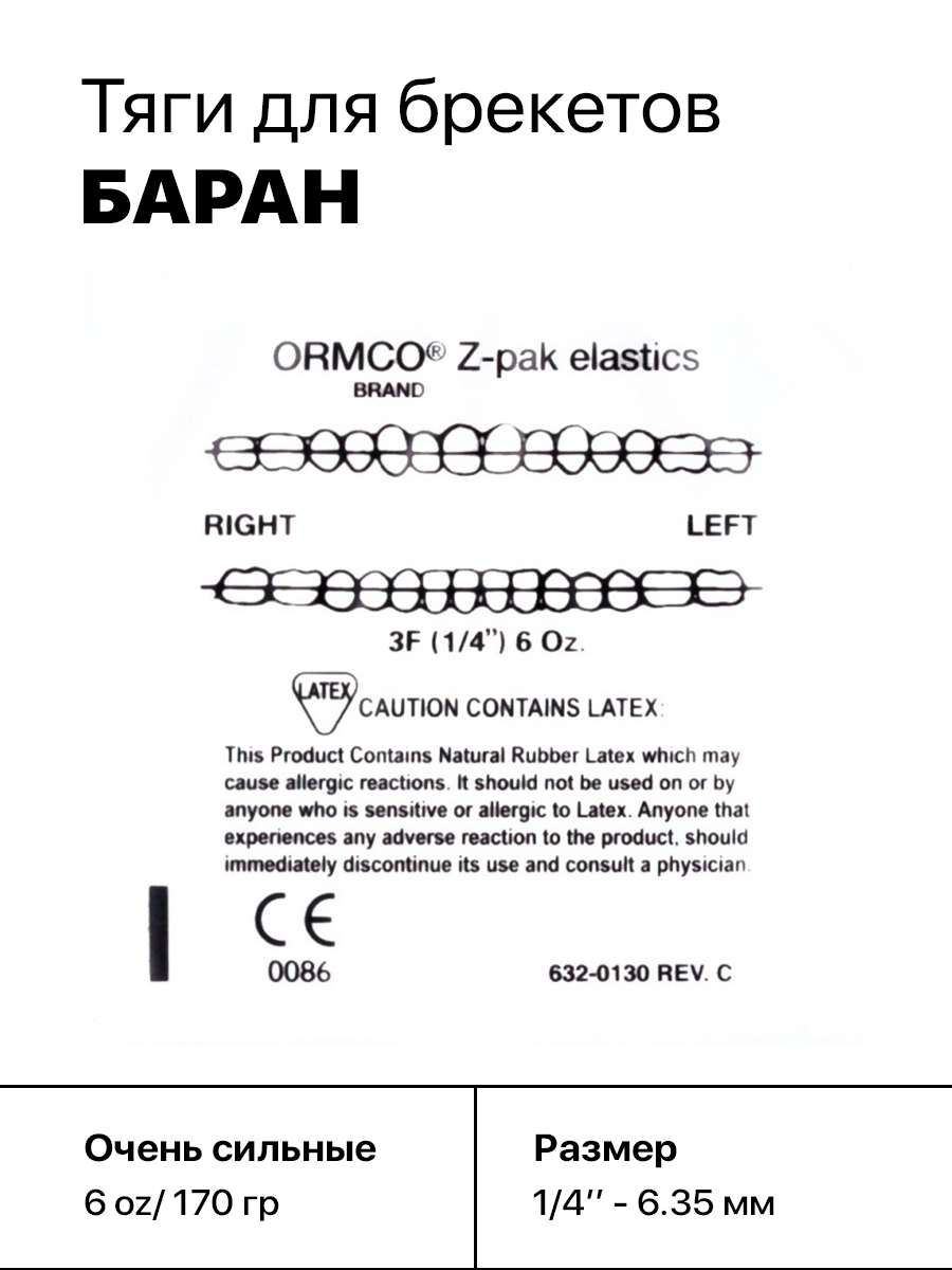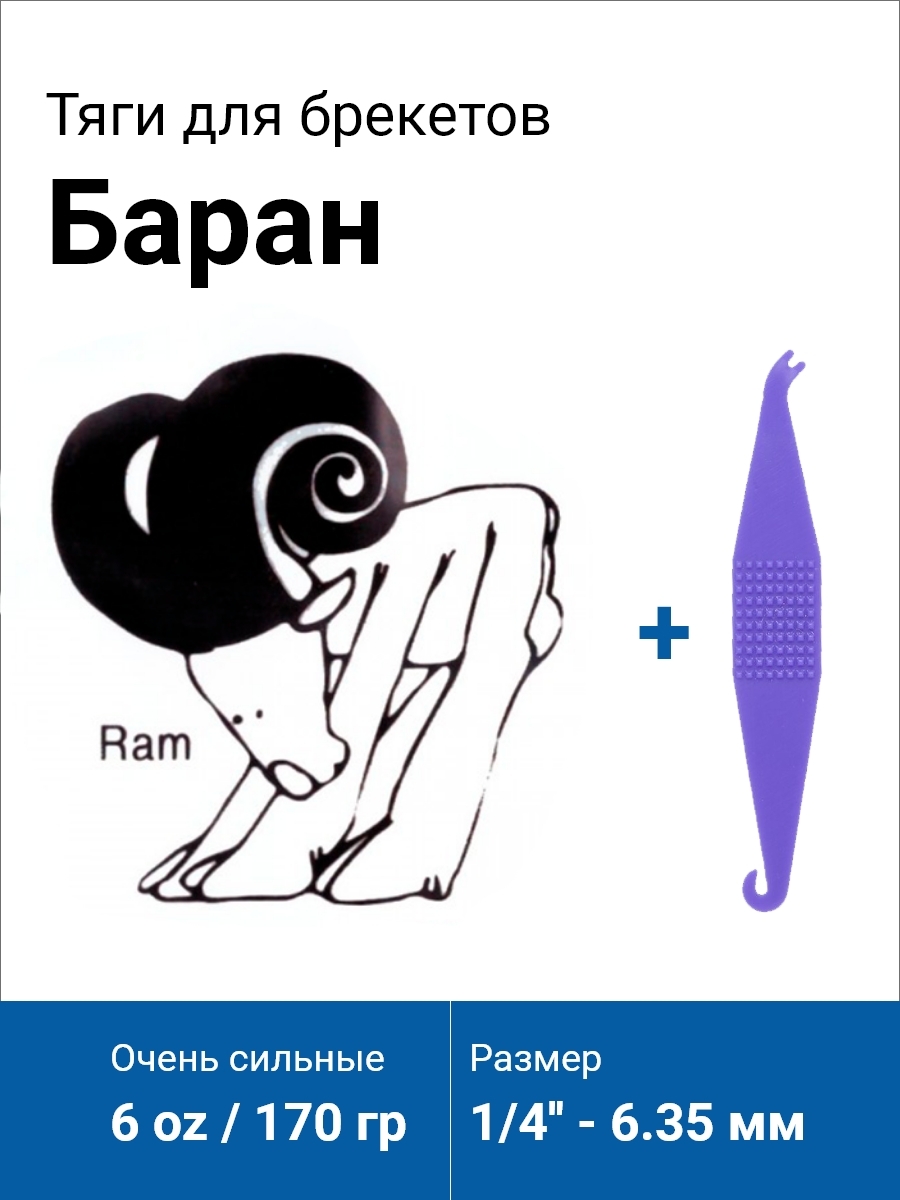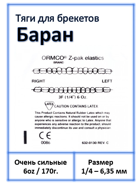 Ортодонтические резинки для брекетов / Тяги для брекетов (эластики) - Баран / Ram (6,35 мм., 170 гр.)