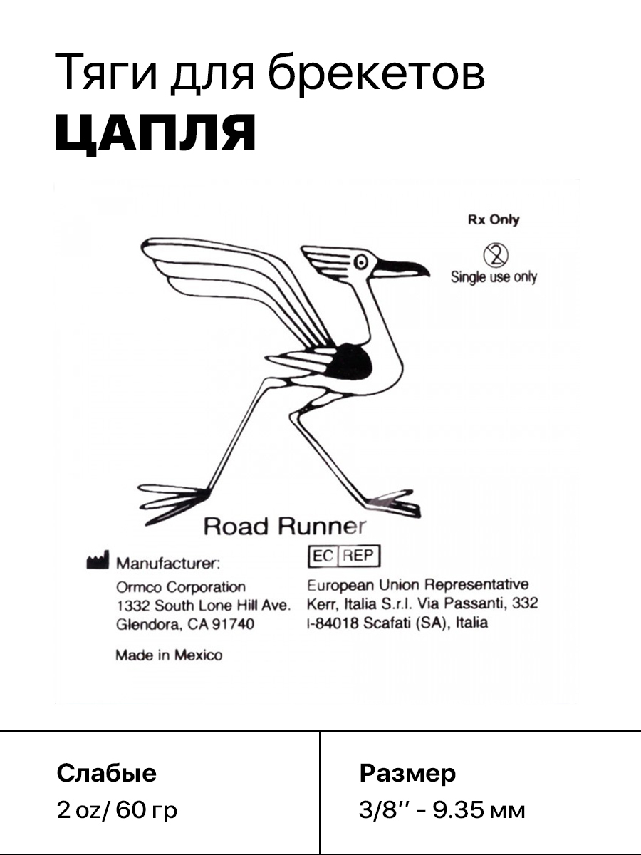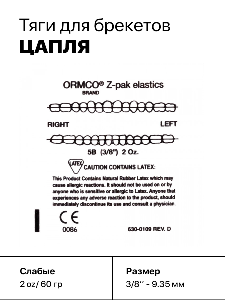 Ортодонтические резинки для брекетов / Тяги для брекетов (эластики) - Цапля / Road Runner (9,35 мм., 60 гр.) Ormco
