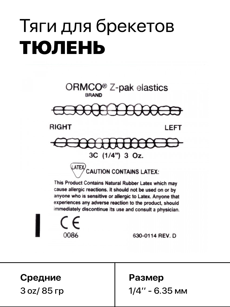 Ортодонтические резинки для брекетов / Тяги для брекетов (эластики) - Тюлень / Seal (6,35 мм., 85 гр.) Ormco