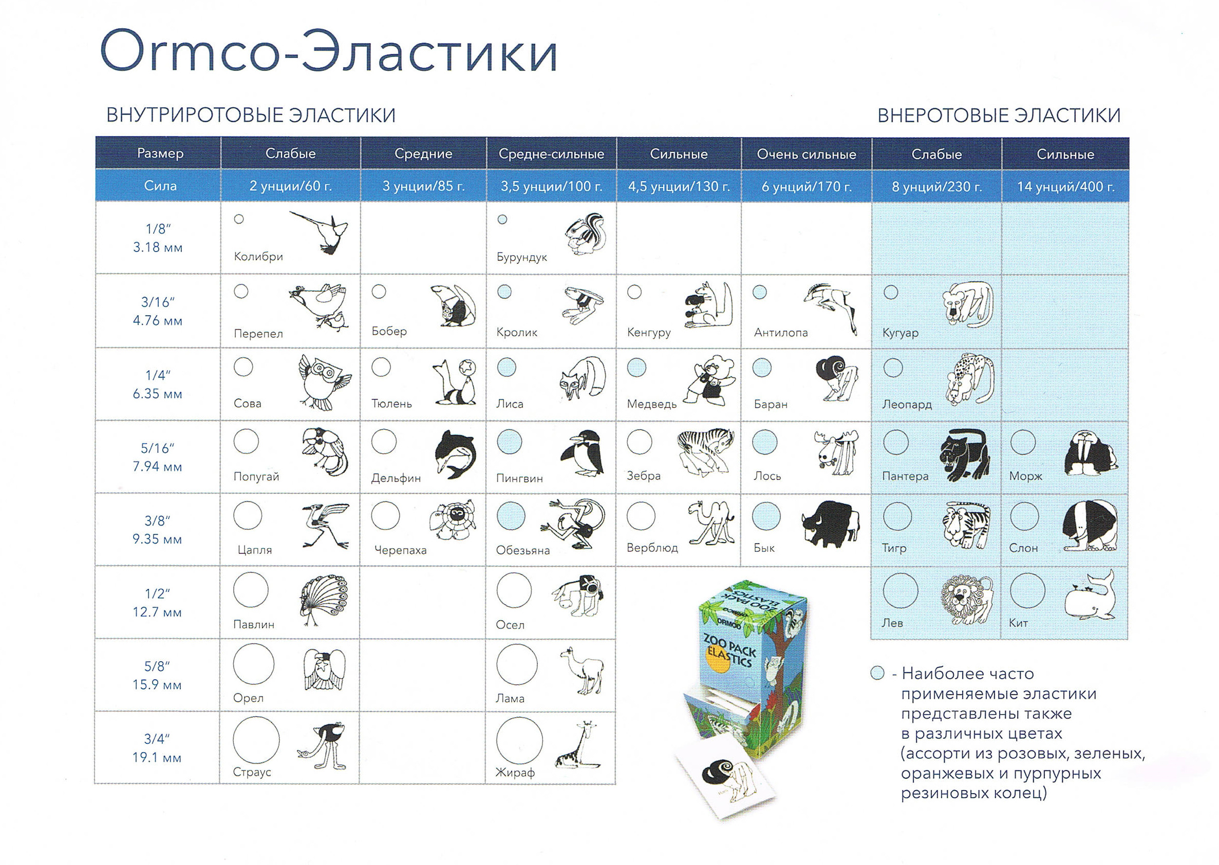 Цветные резинки для брекетов / Тяги для брекетов / Эластики Ormco - Пингвин /Penguin -3.5 Oz (5/16") - пакет 100 шт