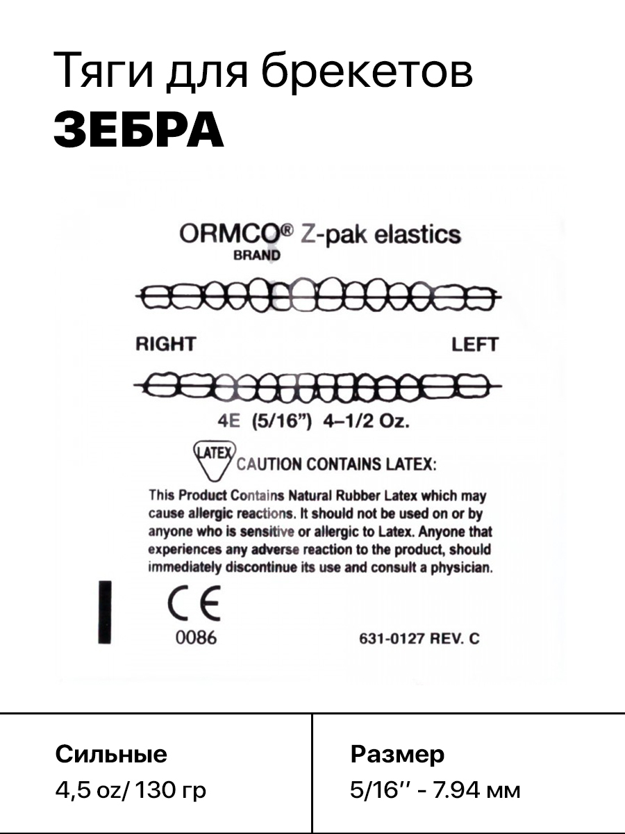 Ортодонтические резинки для брекетов / Тяги для брекетов (эластики) Ormco - Зебра / Zebra 4.5 Oz (5/16) - пакет 100 шт