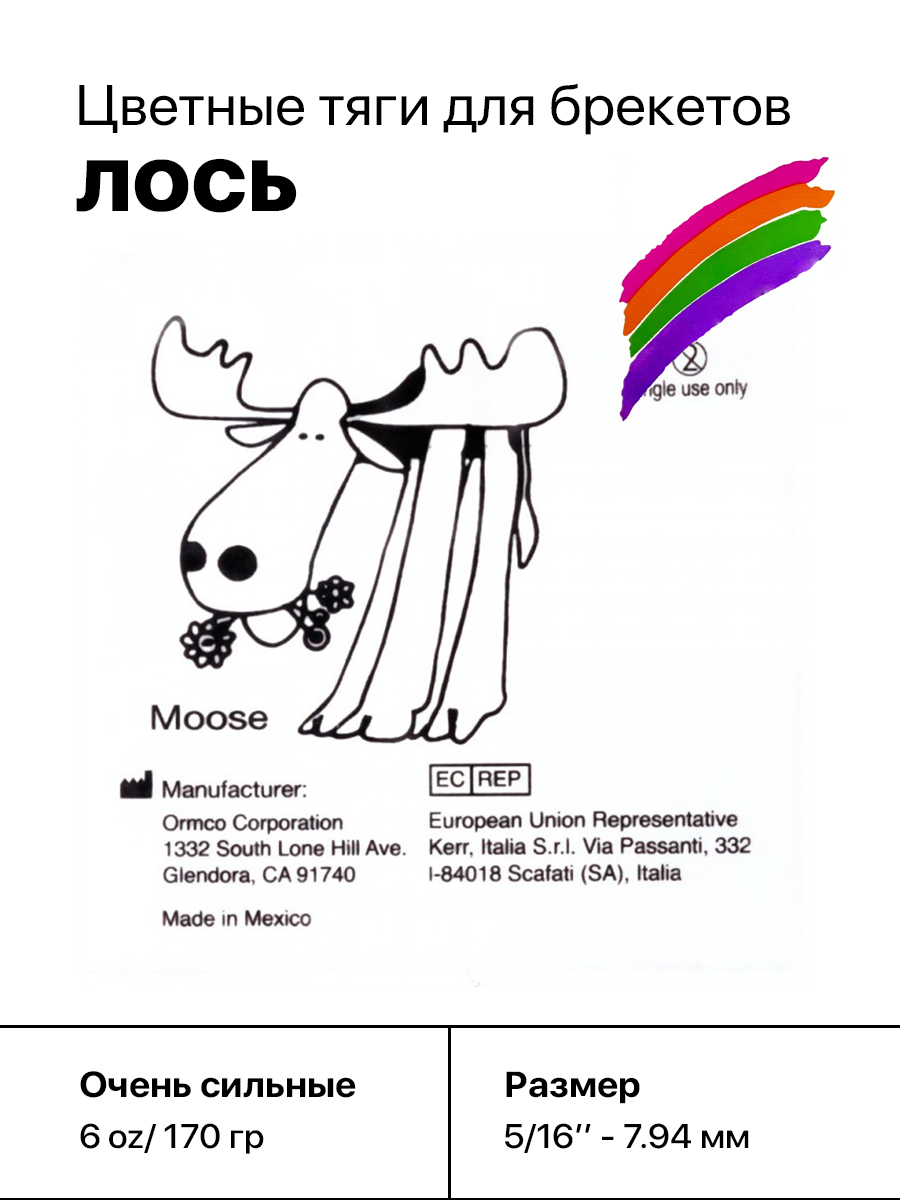 Цветные ортодонтические резинки для брекетов / Тяги для брекетов (эластики) - Лось / Moose (7,94 мм., 170 гр.) Ormco