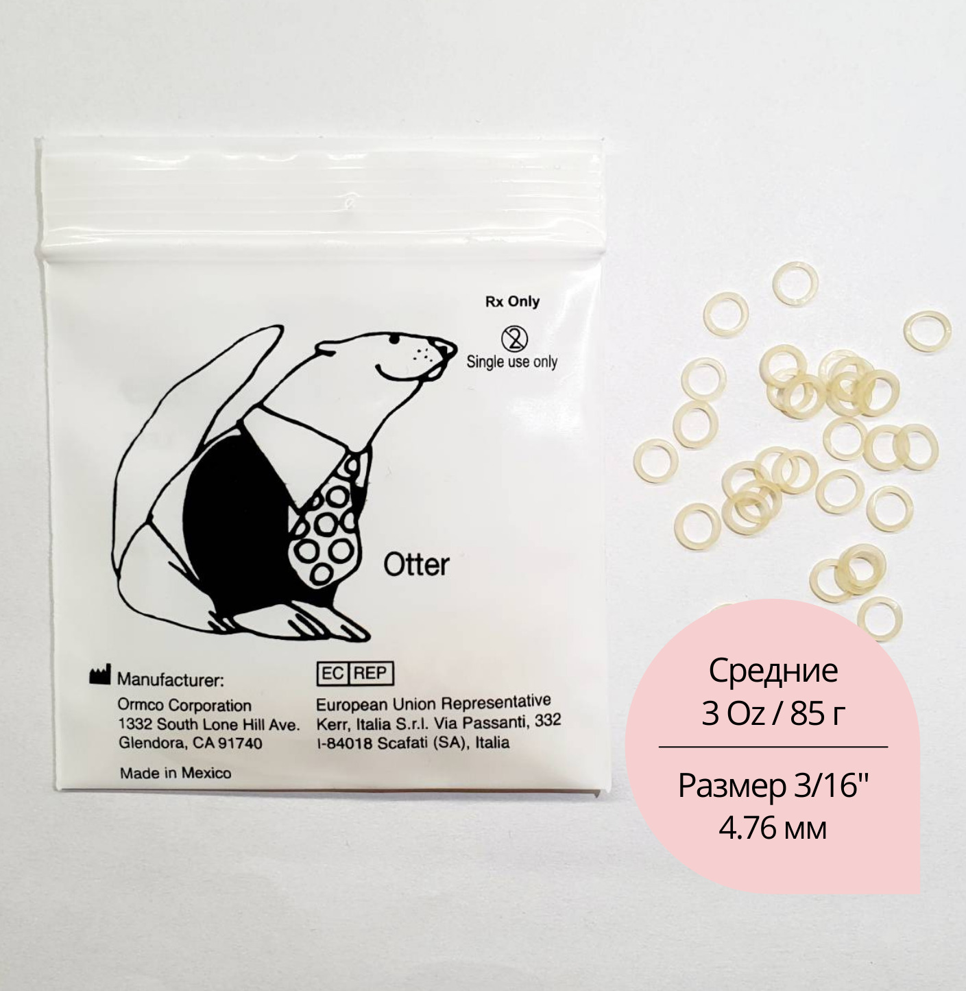 Ортодонтические резинки для брекетов / Тяги для брекетов (эластики) Ormco - Бобер / Otter 3 Oz (3/16) - пакет 100 шт