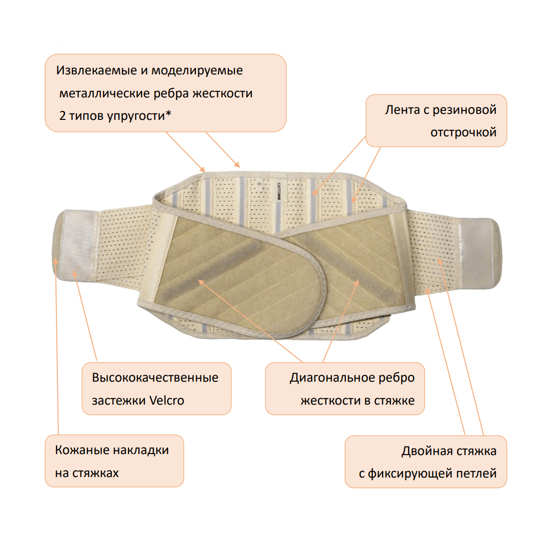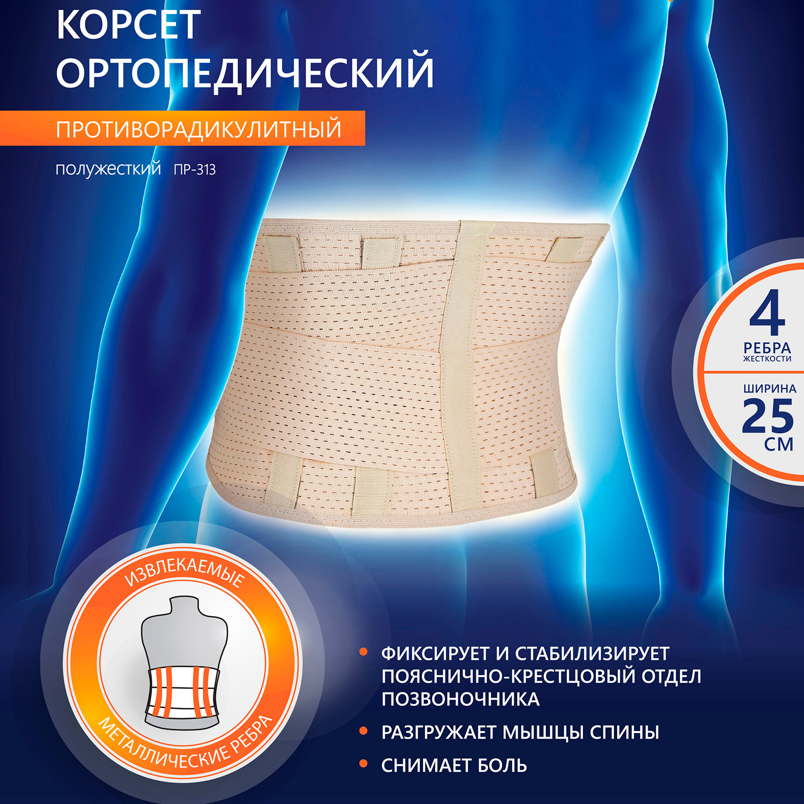 Корсет ортопедический противорадикулитный усиленный Орт.ПР-311 ус., ширина: 22 см, кол-во рёбер жёсткости: 4, Бежевый, №4, L, 96-109 см