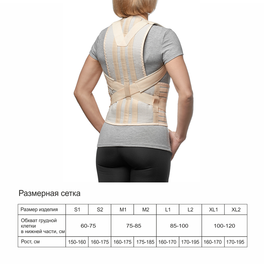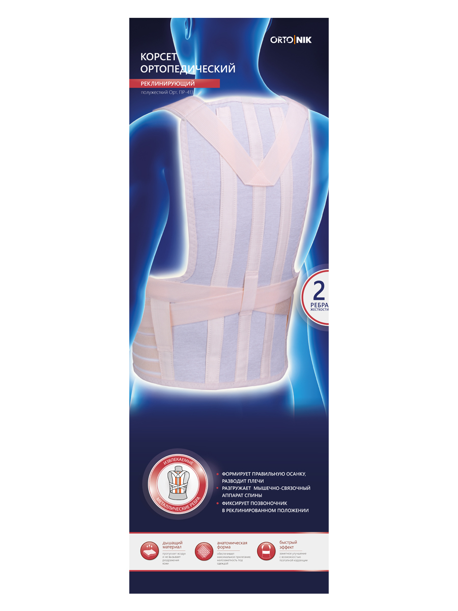 Корсет ортопедический реклинирующий полужёсткий ПР-413, кол-во рёбер жёсткости: 2, Бежевый 8 (XL2), талия:100-120, рост: 170-195