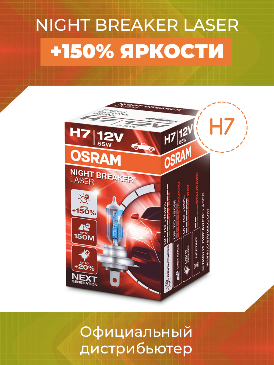 Лампа автомобильная Osram NIGHT BREAKER LASER H7, 3800 К, 1 шт
