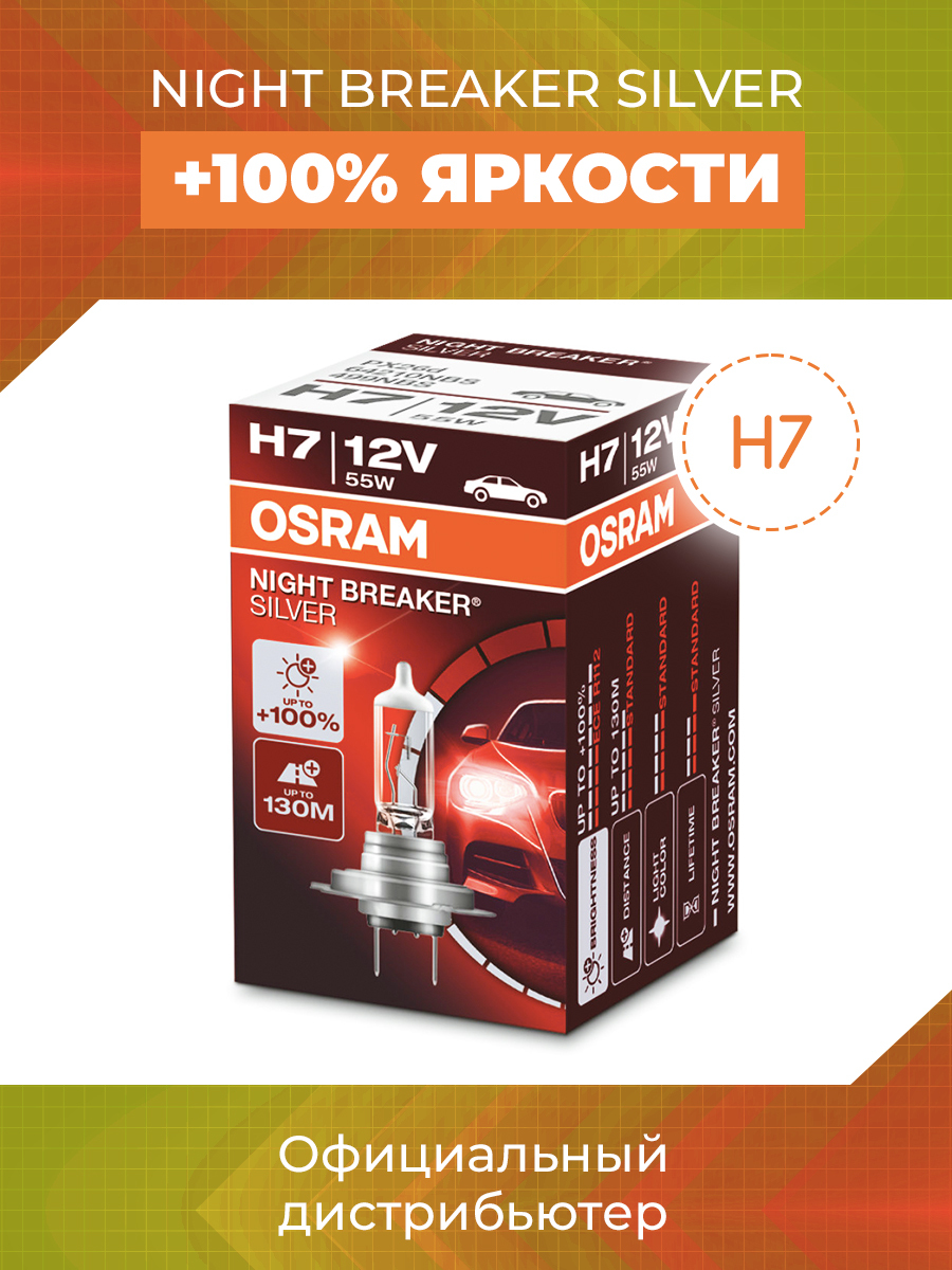 Лампа автомобильная Osram NIGHT BREAKER SILVER H7, 3200К, 1 шт