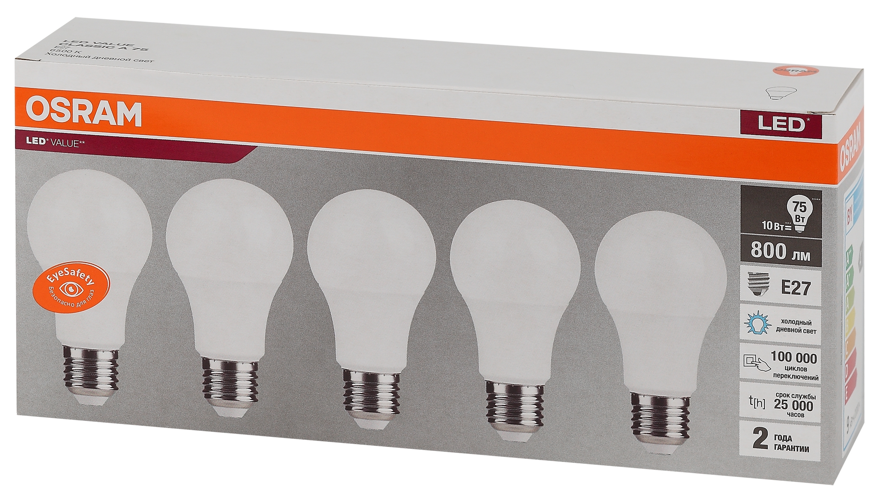 Лампочка OSRAM LED VALUE, Холодный белый свет, 10 Вт, Светодиодная, 5 шт.