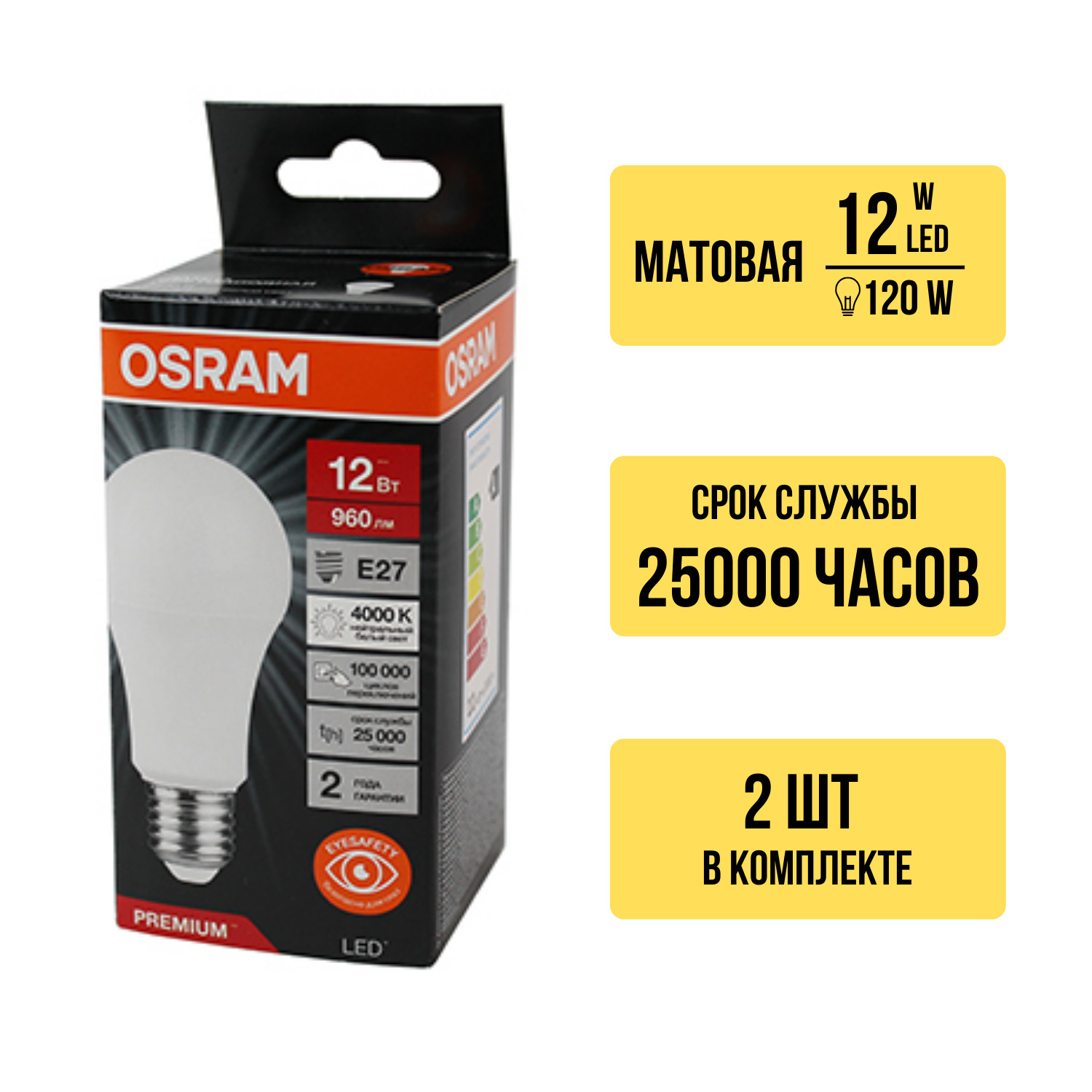 Лампочка OSRAM LED VALUE BLACK, Нейтральный свет, 4000К, E27, 12 Вт, Светодиодная, 2 шт.