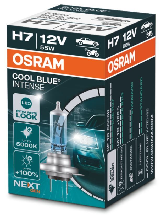 Лампа OSRAM COOL BLUE INTENSE H7, 12V, 55Вт, 5000K, +100%, 64210CBN