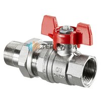 Кран шаровой, Optibal, DN-15, 1/2", НВ, PN, бар-16, ручка-бабочка, никелированный, с ниппелем и НГ