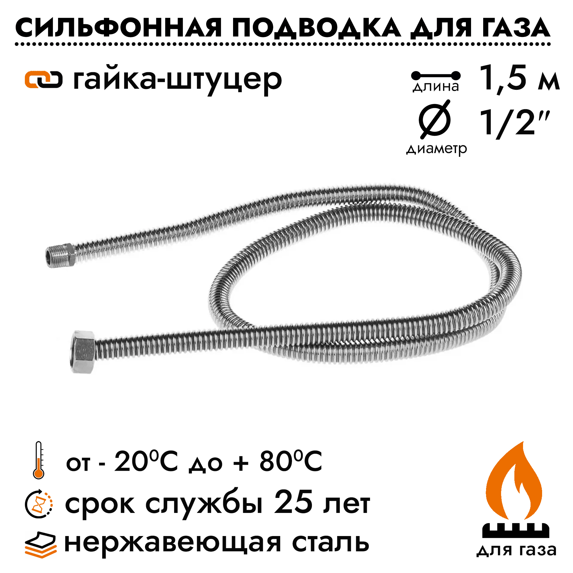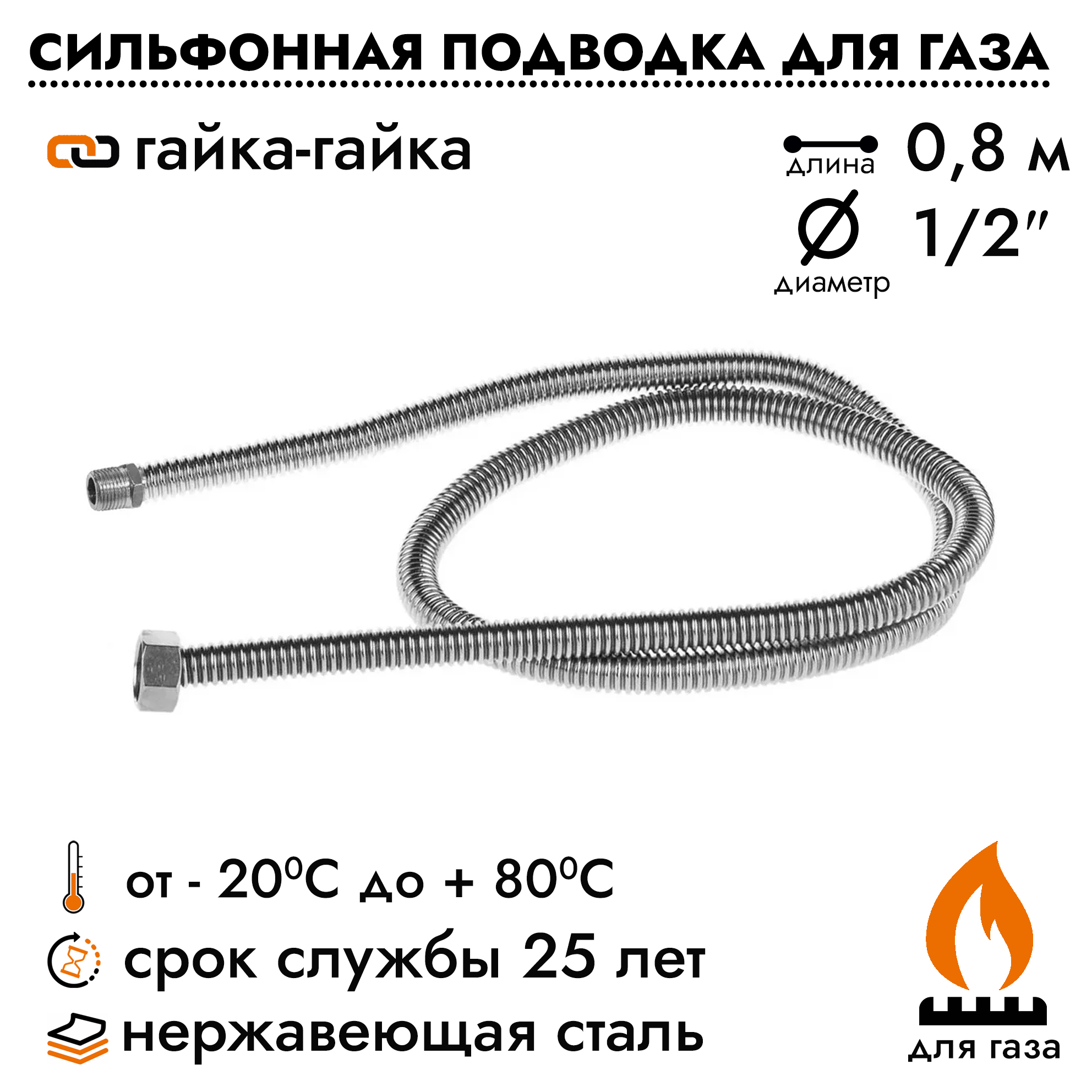 Шланг, подводка для газовых систем OVERCON 1/2" Гайка-гайка, 1 шт.