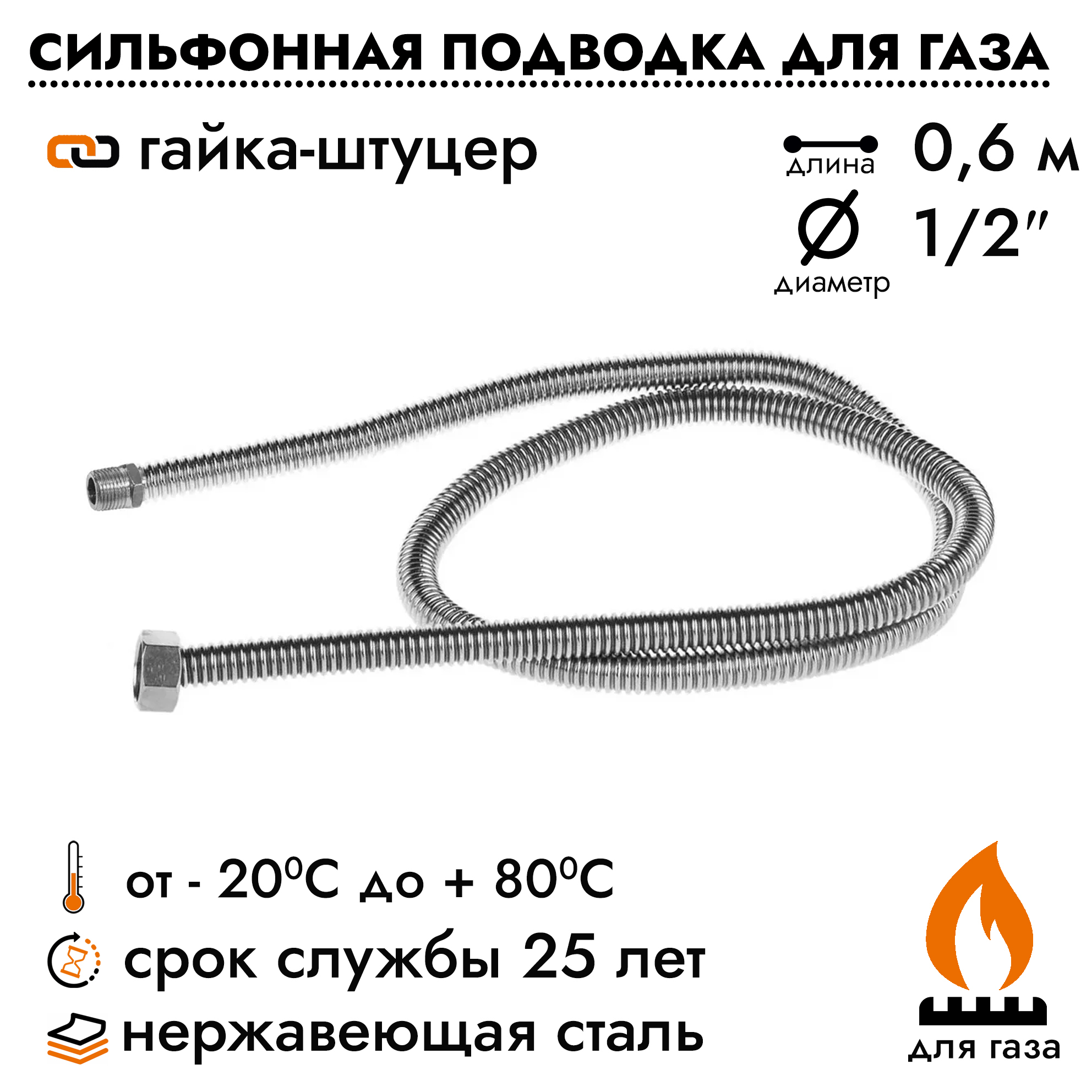 Шланг, подводка для газовых систем OVERCON 1/2" 0,6м Гайка-штуцер