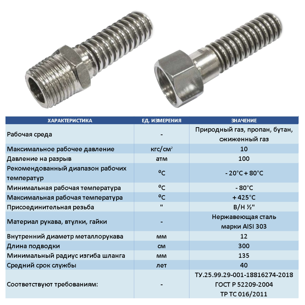 Подводка сильфонная для газа 1/2" х 3,0 м в/н