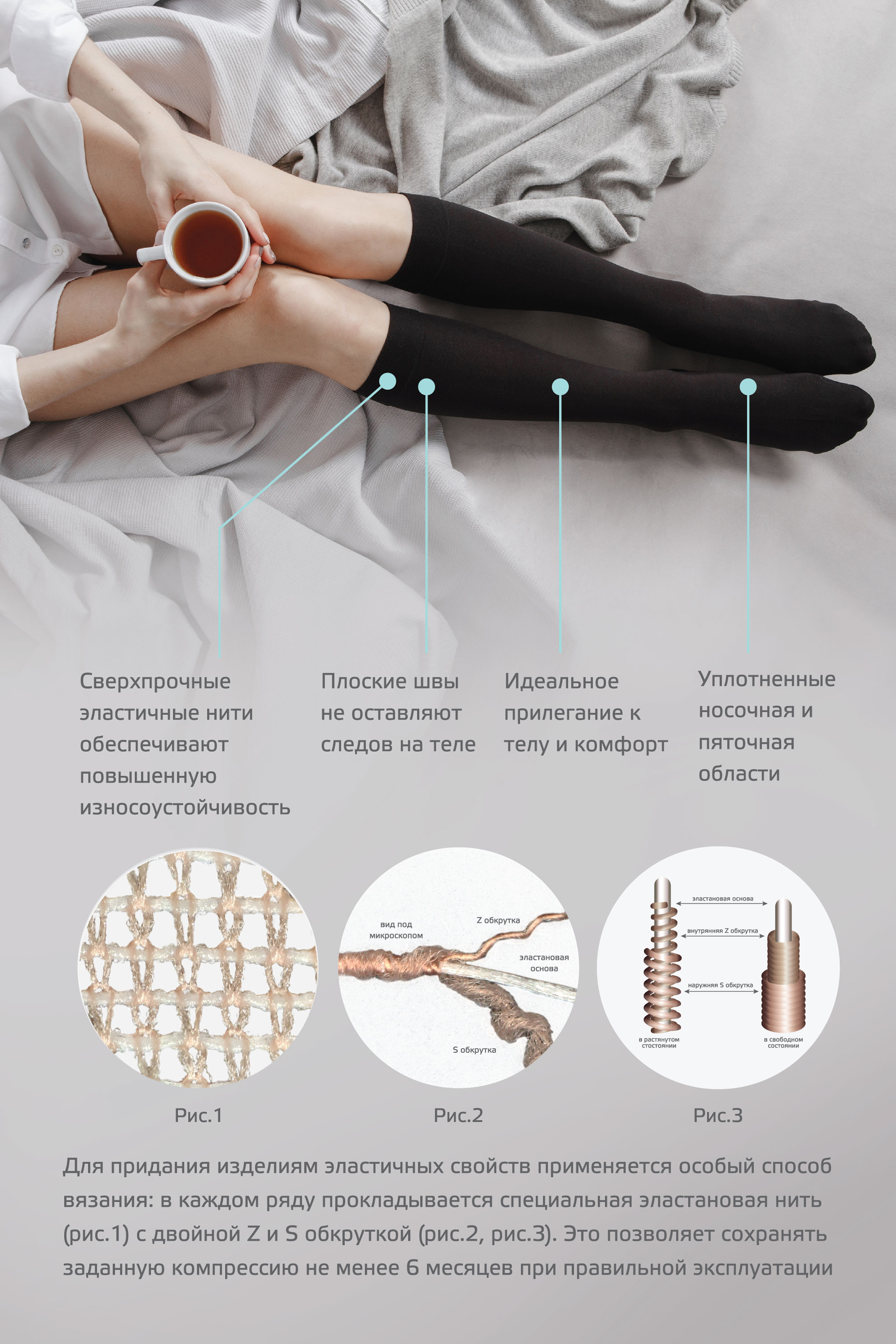 Чулки компрессионные противоварикозные медицинские кругловязаные 1 класс 18-21 мм рт. ст.
