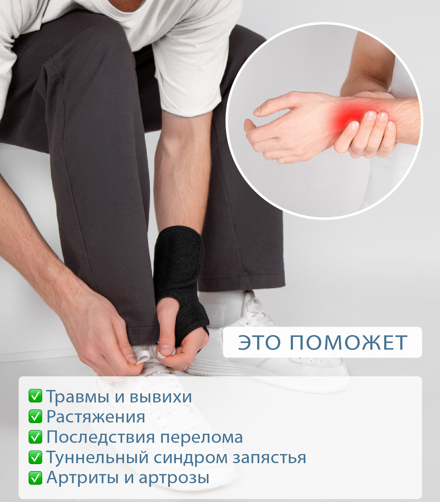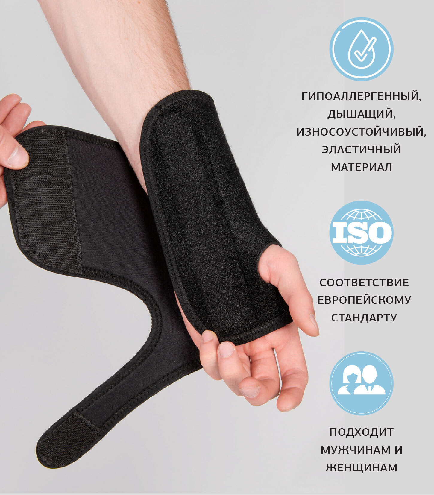 Ортез, бандаж на лучезапястный сустав на левую руку без фиксации большого пальца для мужчин и женщин
