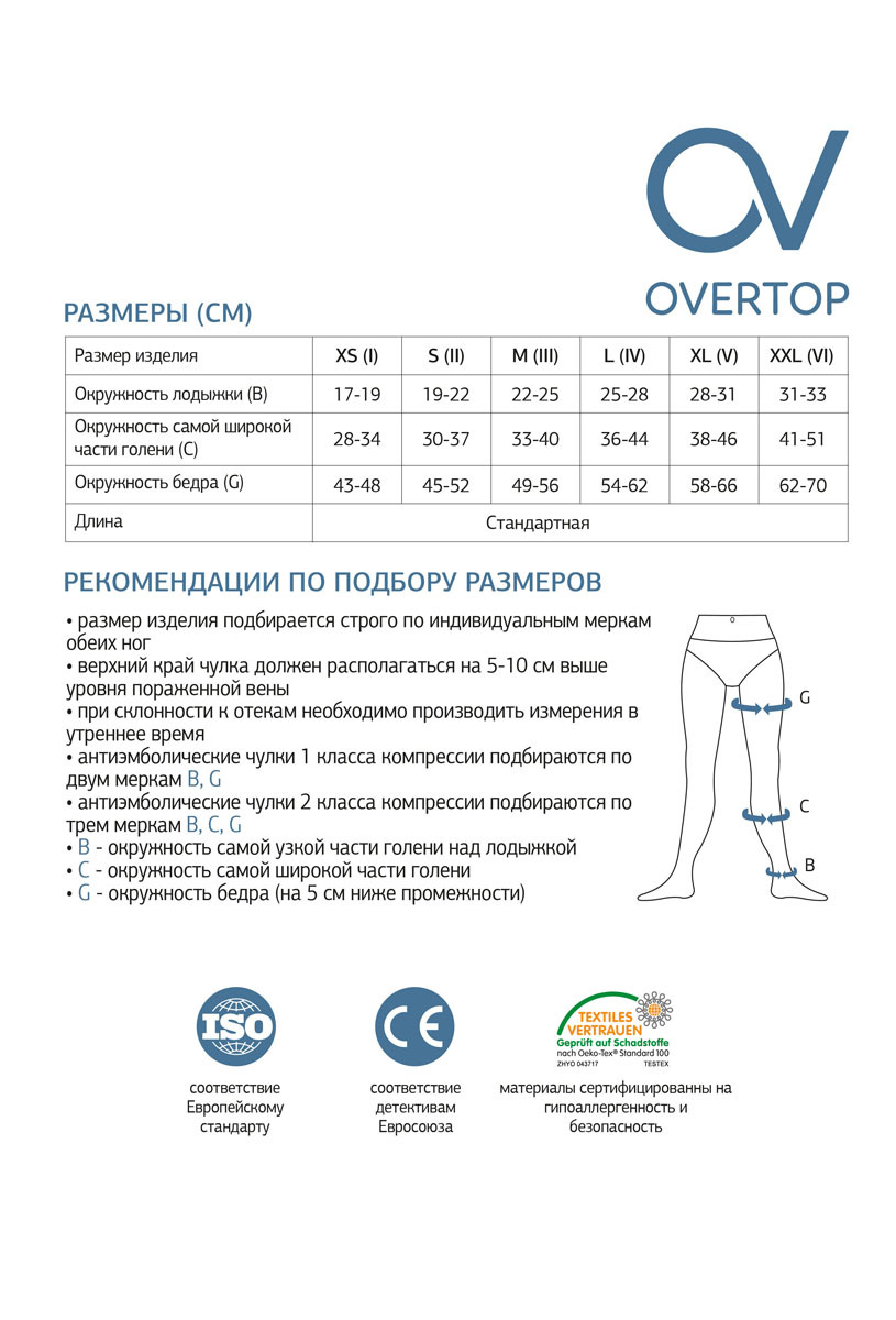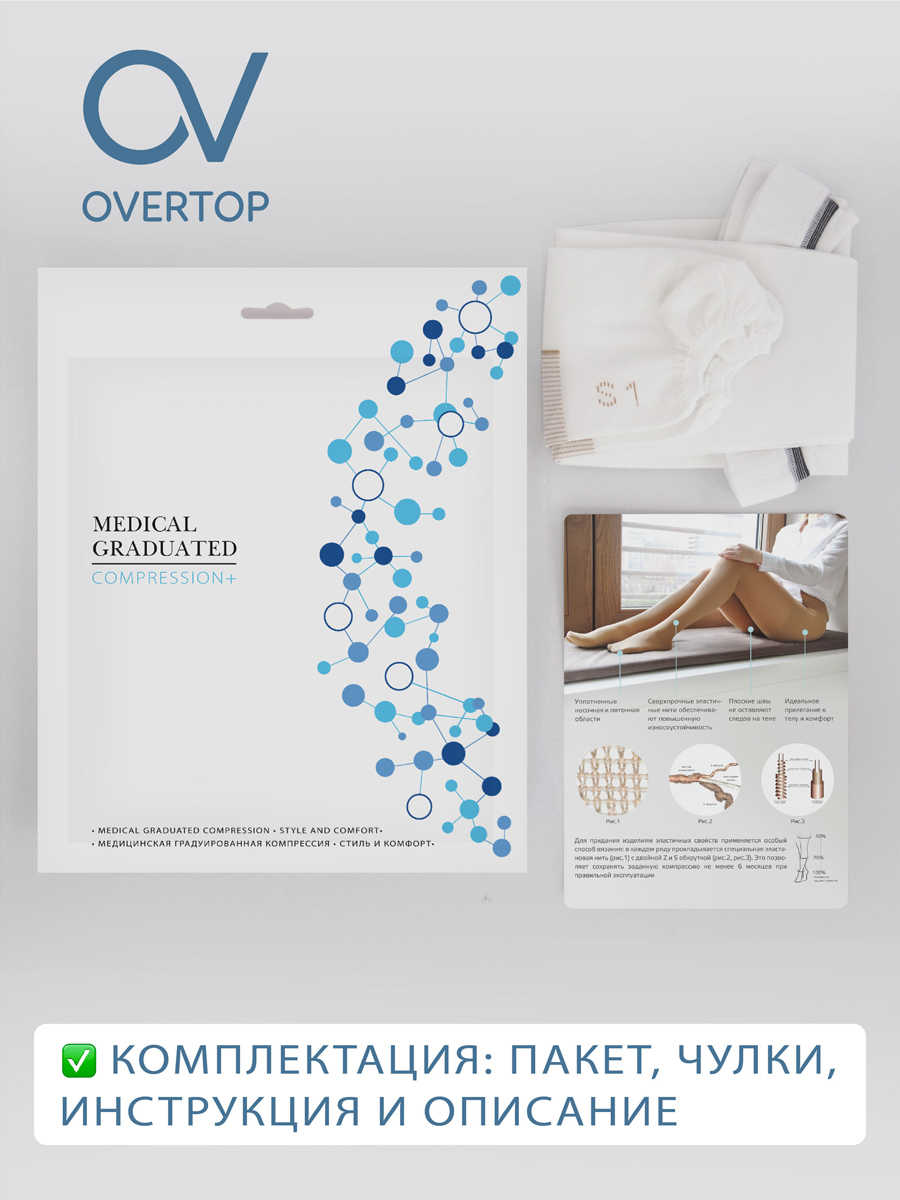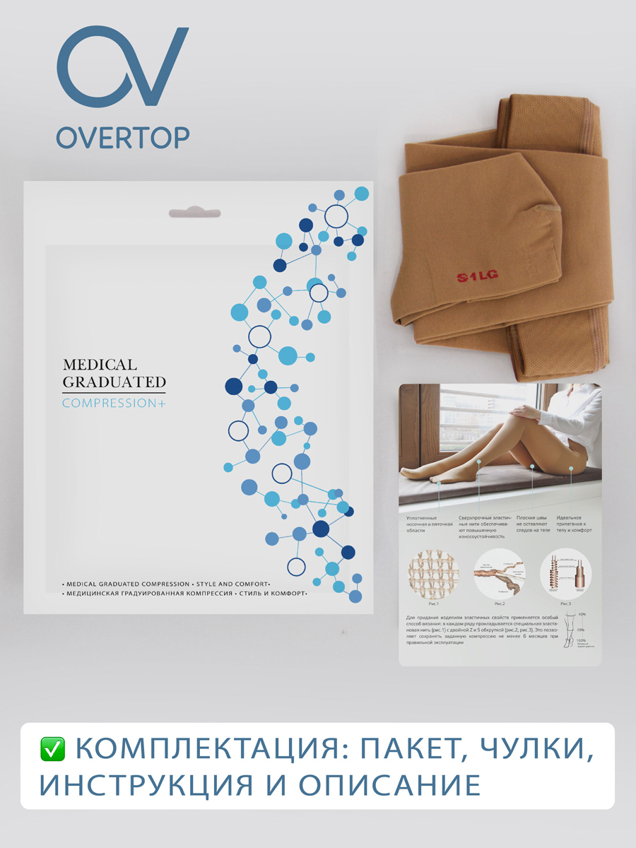 Компрессионные чулки OVERTOP Будьте здоровы бежевый, 2 класс компрессии, 2 шт