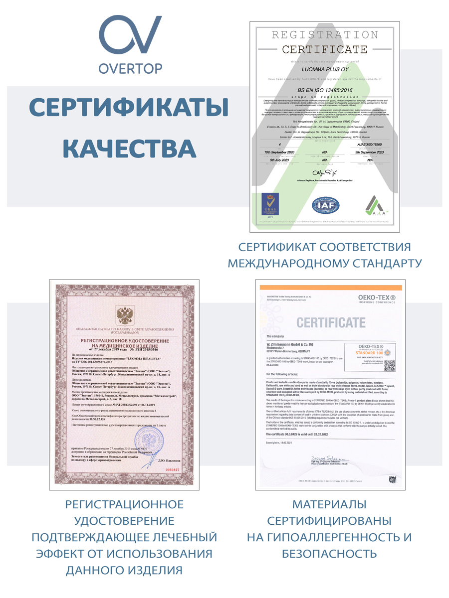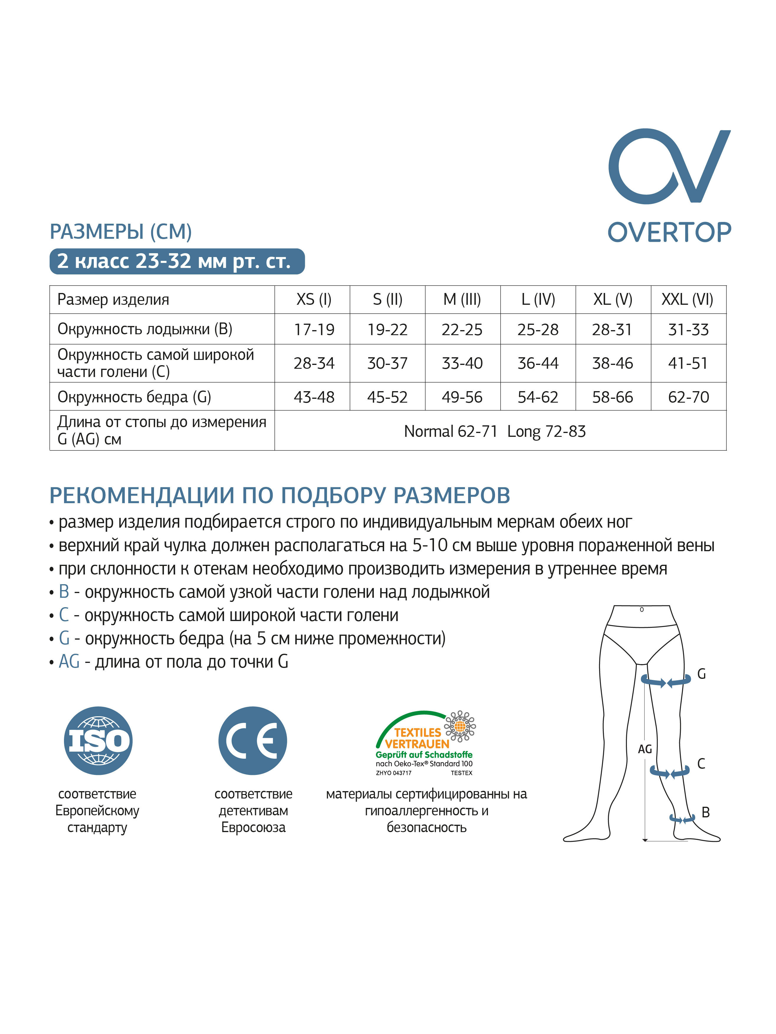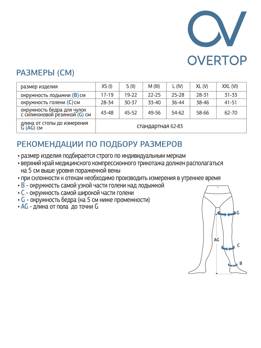 Компрессионные чулки OVERTOP Будьте здоровы бежевый, 2 класс компрессии, 2 шт
