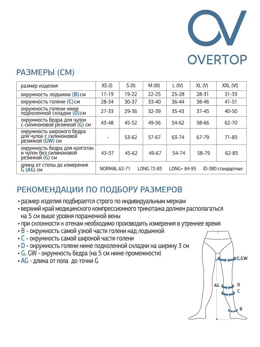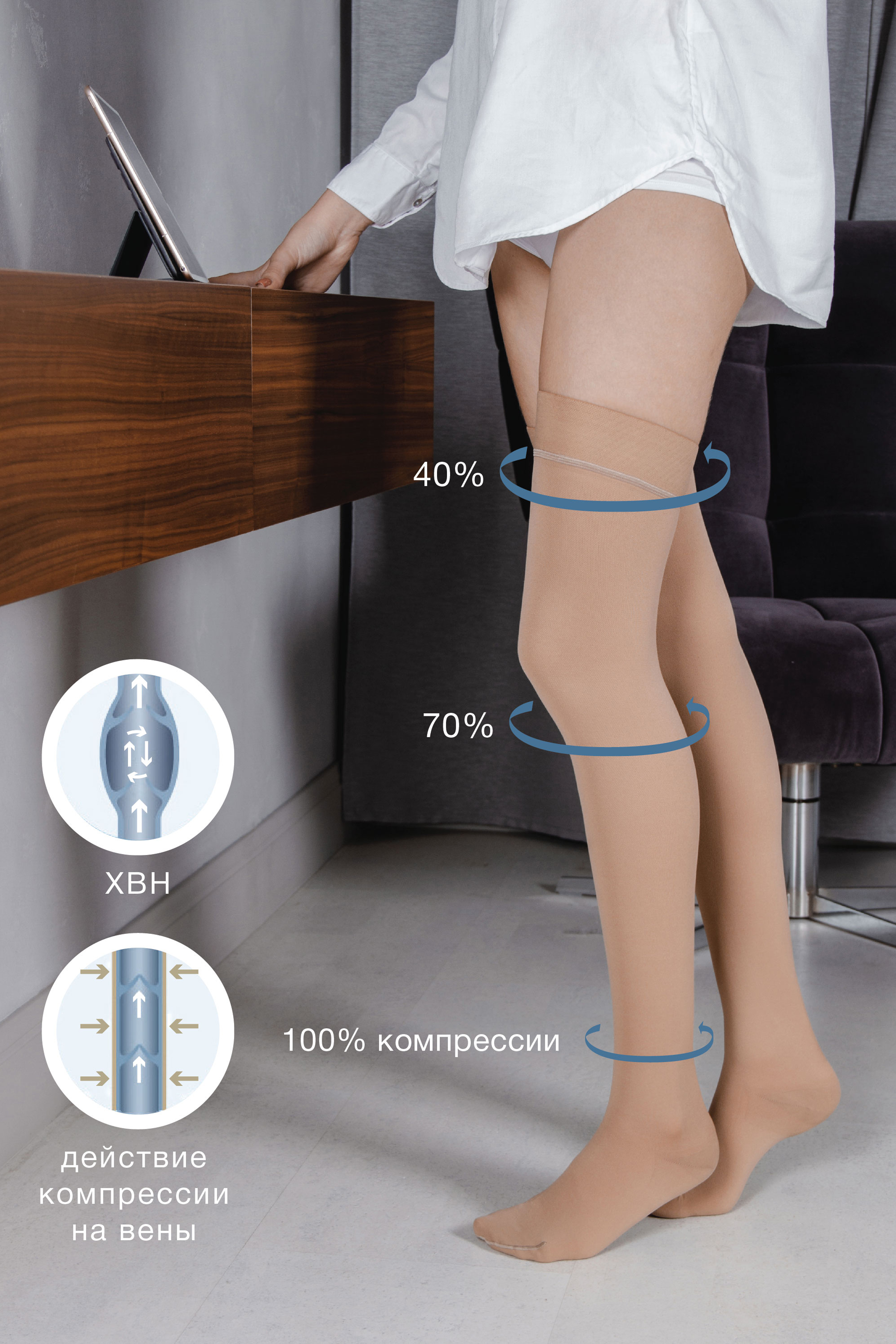 Компрессионные чулки OVERTOP Будьте здоровы бежевый, 2 класс компрессии, 2 шт