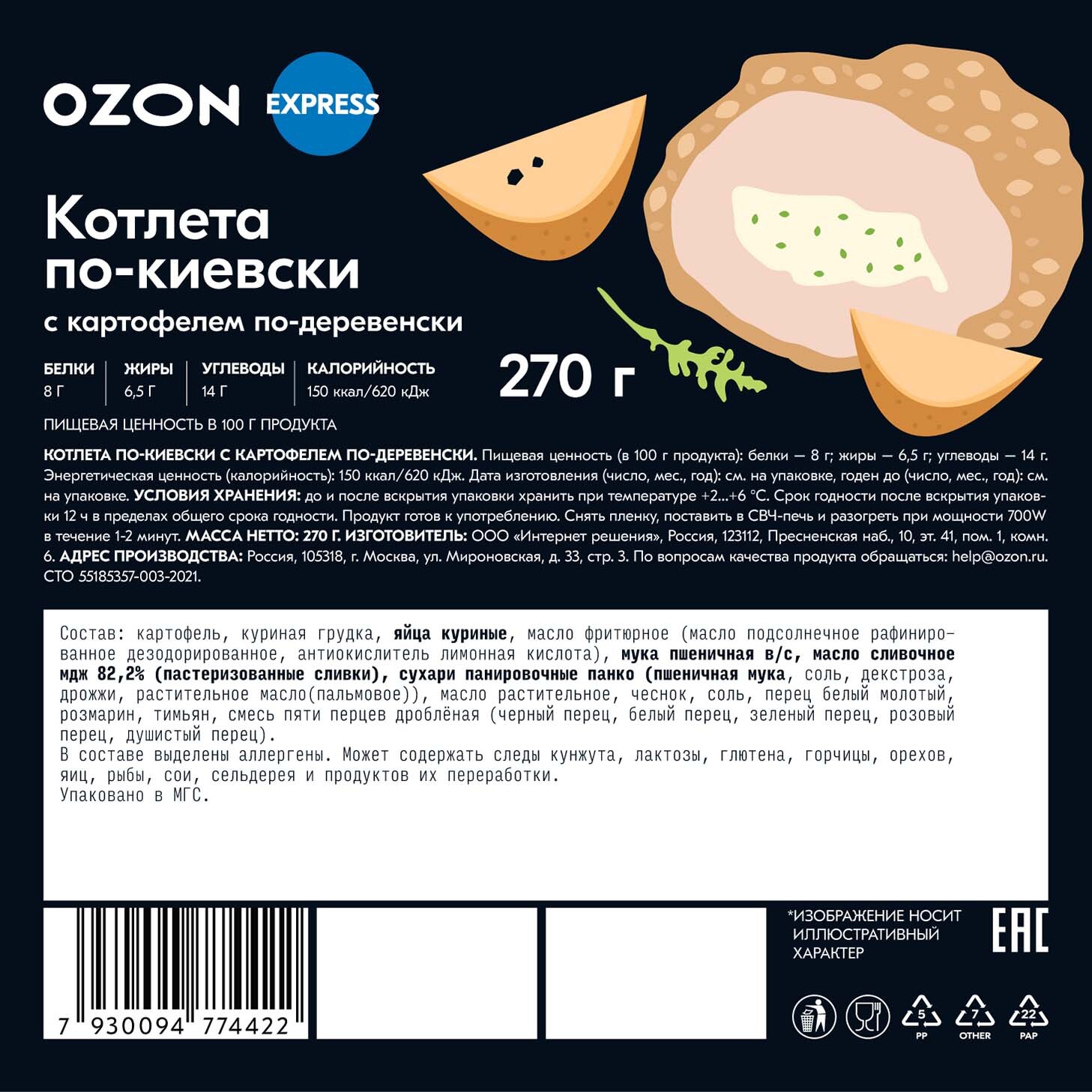 Котлета по-киевски с картофелем по-деревенски Ozon Express, 270 г