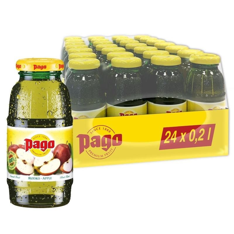 Сок Pago Яблоко.(В упаковке 24 стеклянных бутылки по 0.2 л.)