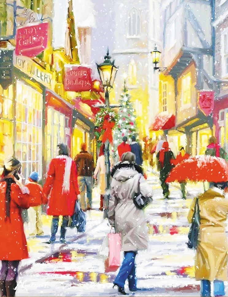 Алмазная мозаика 40х50 полная выкладка холст на подрамнике По улице зимнего города