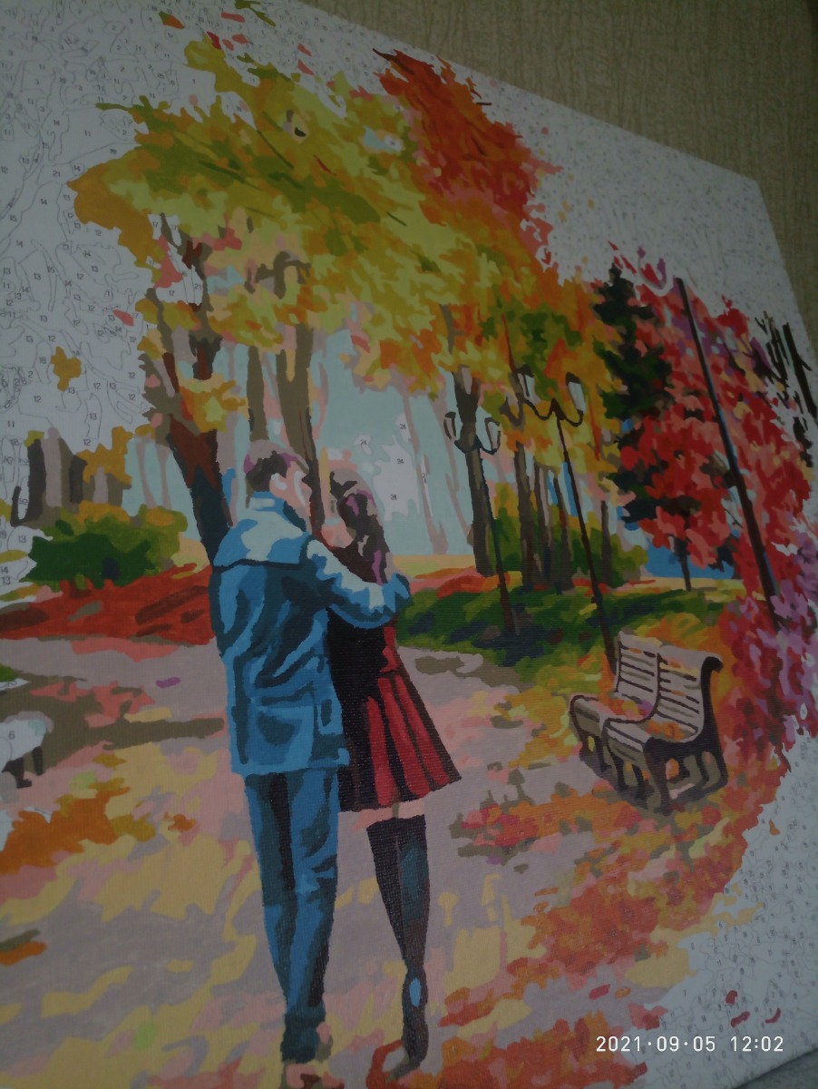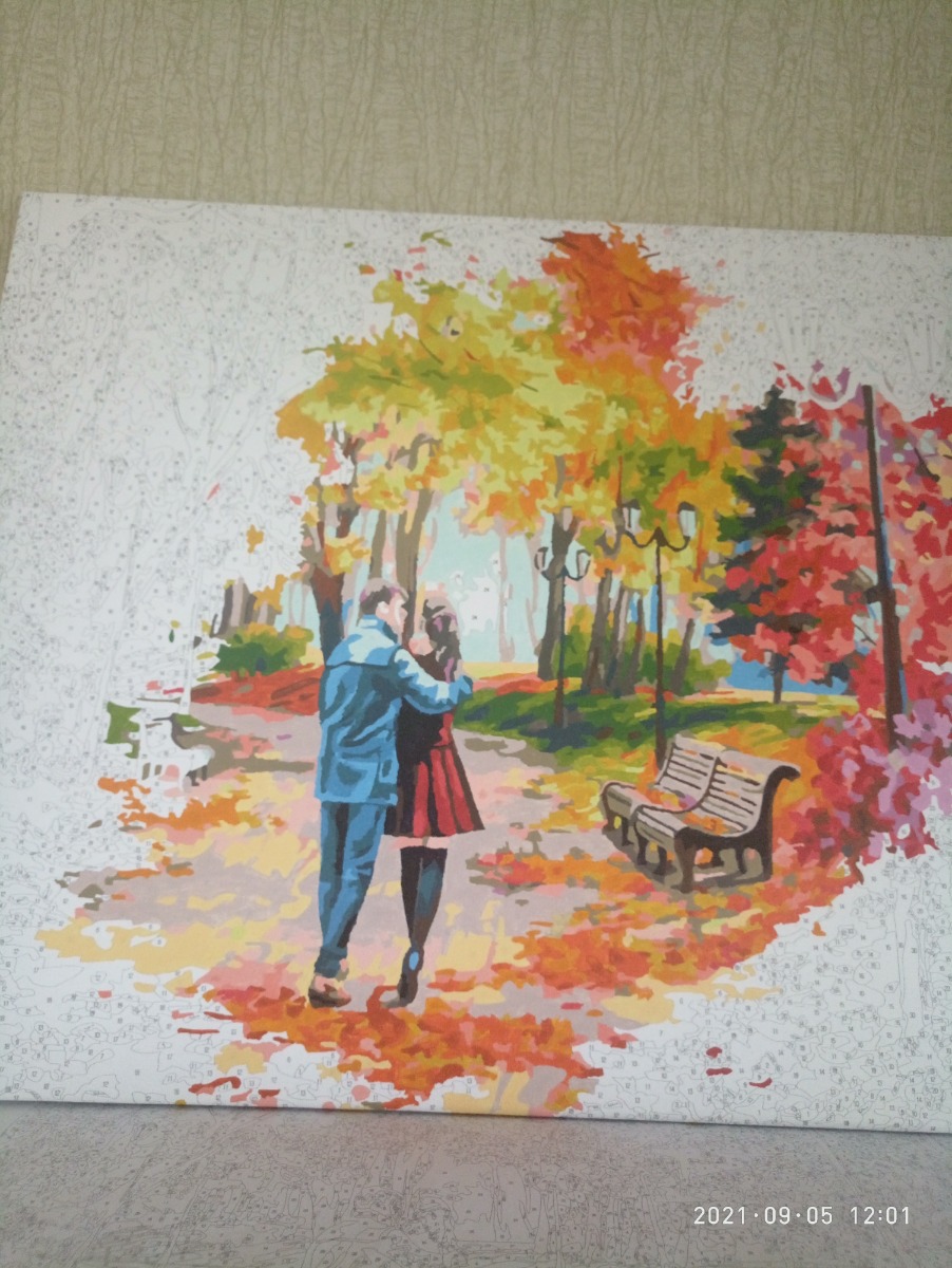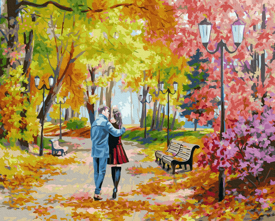 Картина по номерам 40 x 50 см Пейзаж - Осенний парк, скамейка, свидание Холст на подрамнике