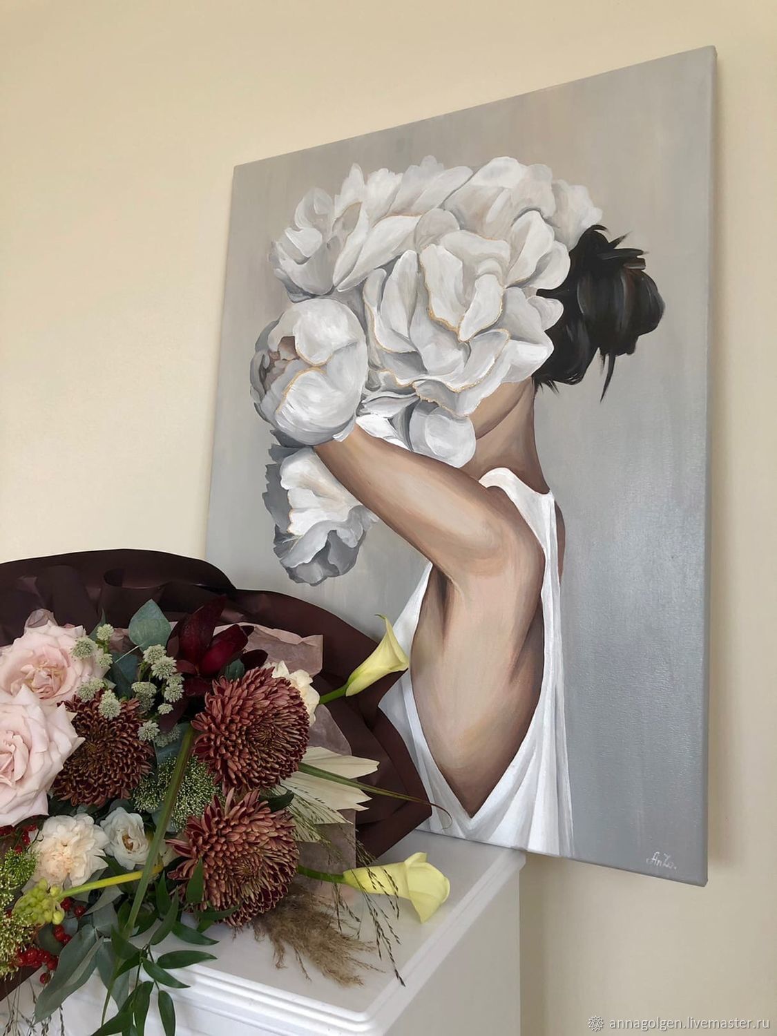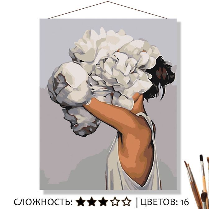 Картина по номерам 40х50 на подрамнике Девушка с белыми цветами