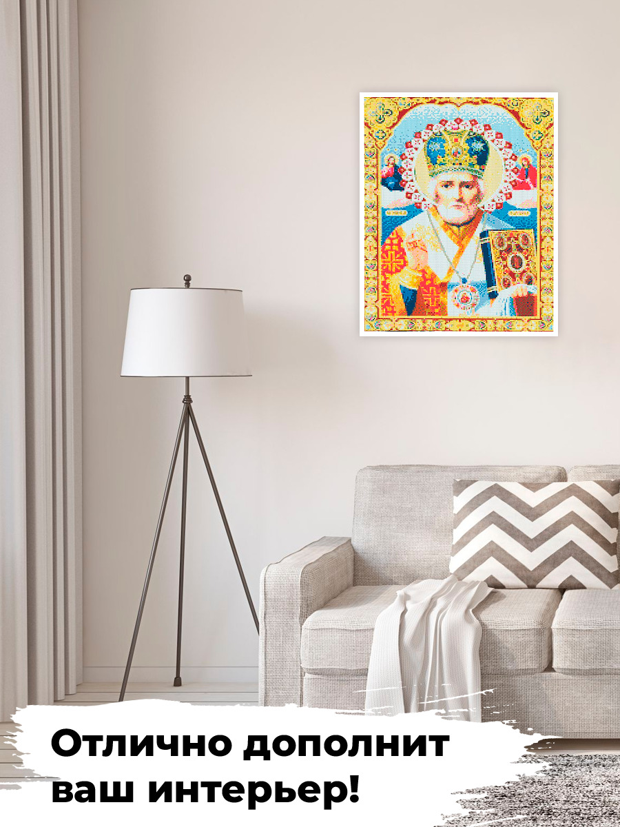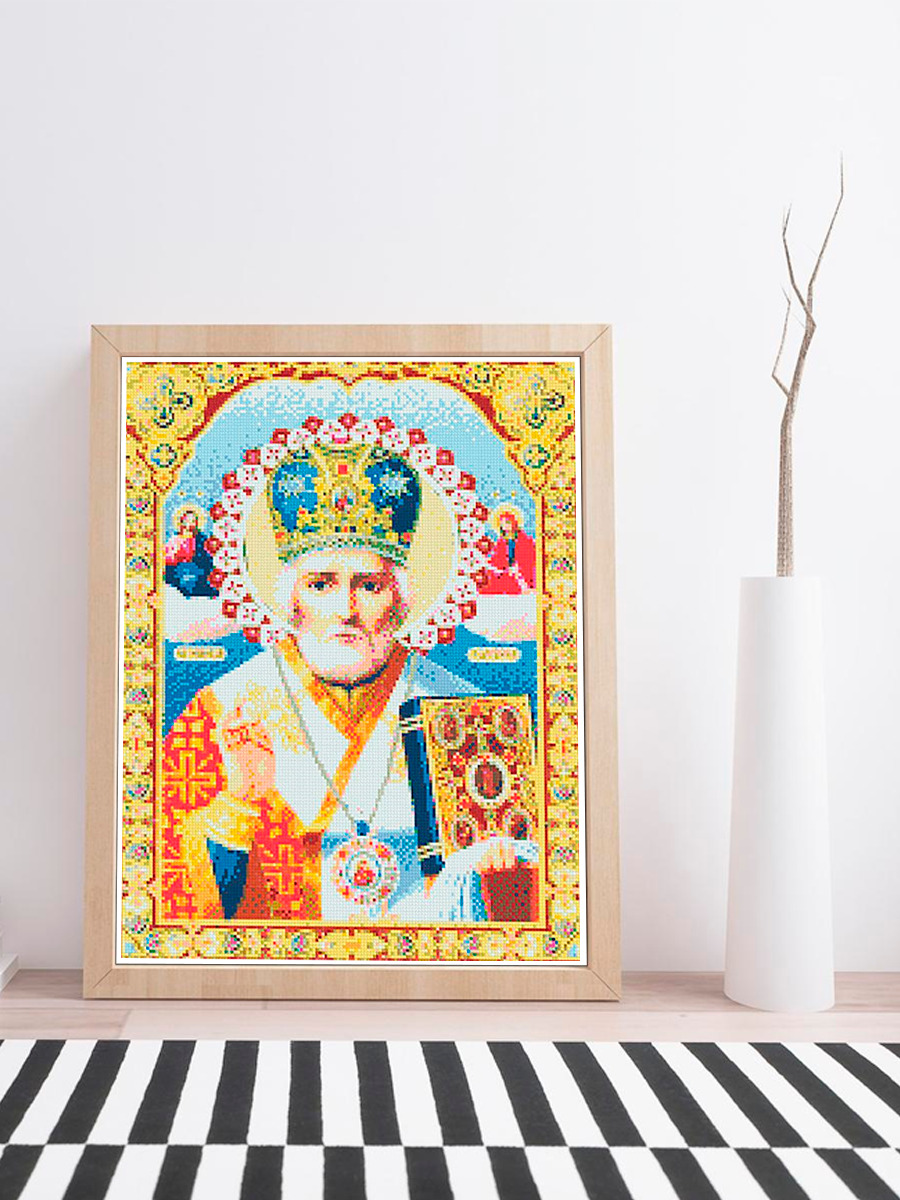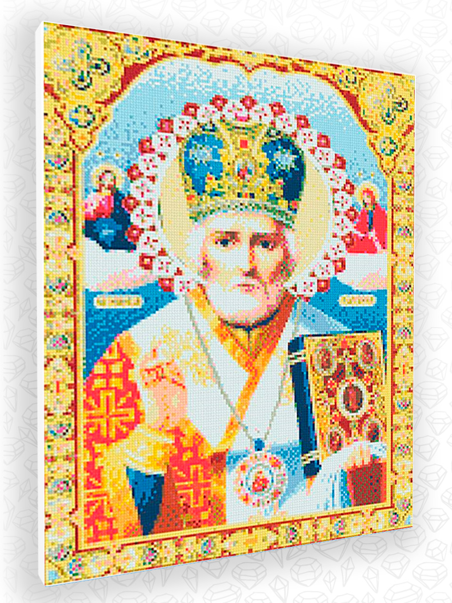 Алмазная мозаика 40х50, полная выкладка "Икона Николай Чудотворец" Вышивка стразами на подрамнике
