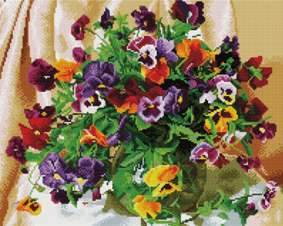 Алмазная мозаика Букет анютины глазки (40x50) полная выкладка, холст на жестком подрамнике