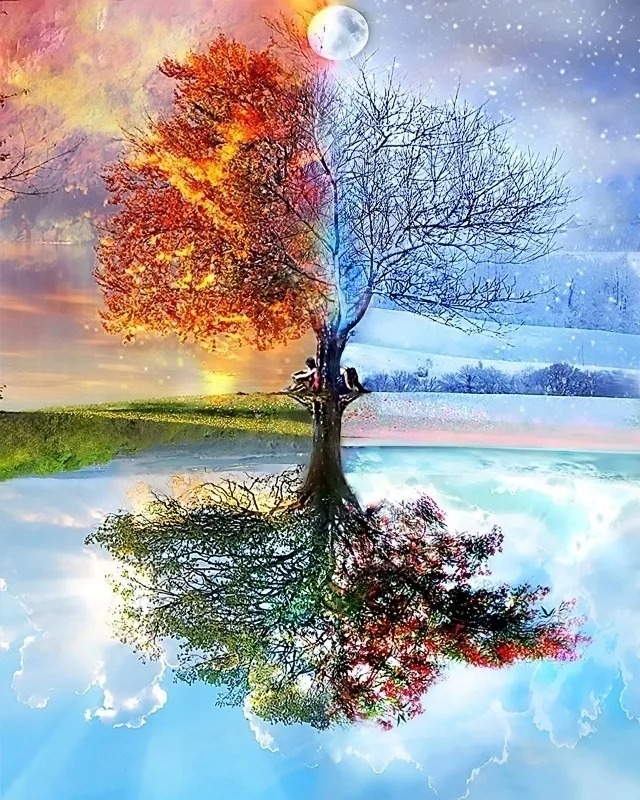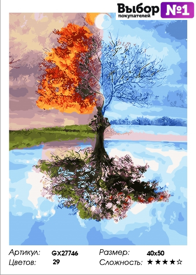 Картина по номерам на холсте 40х50см. "Времена года" / "Дерево" / "Природа"