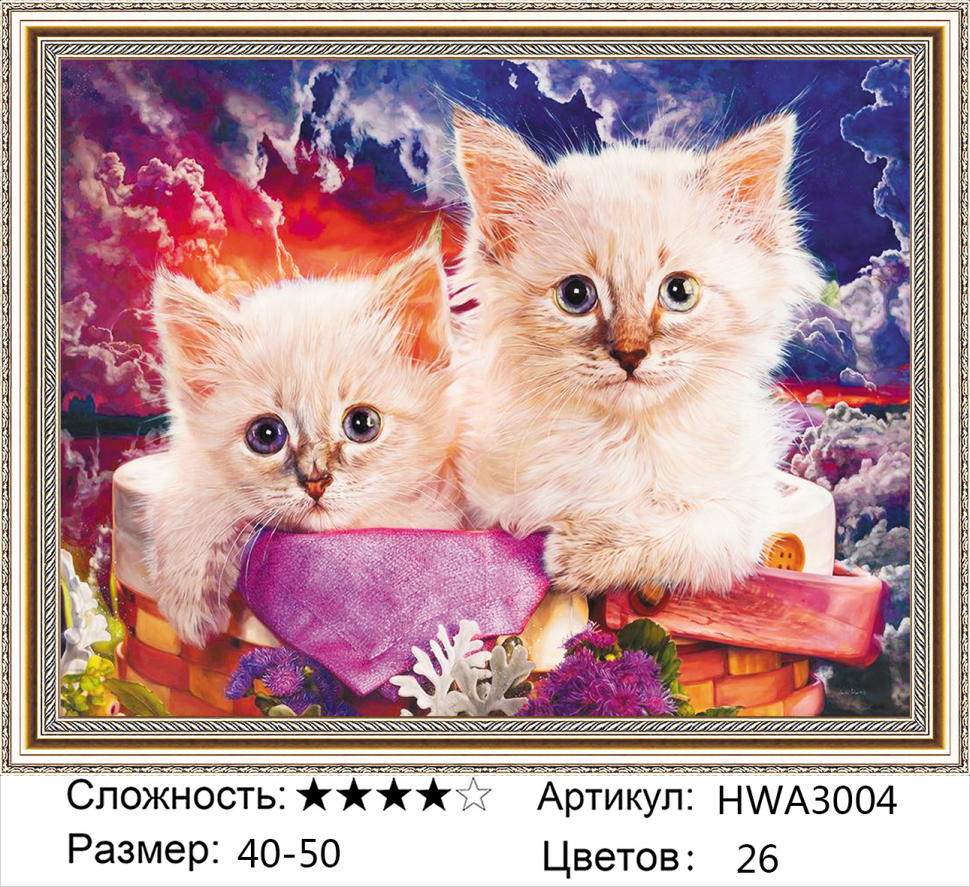 Алмазная мозаика 40х50 полная выкладка холст на подрамнике Котята