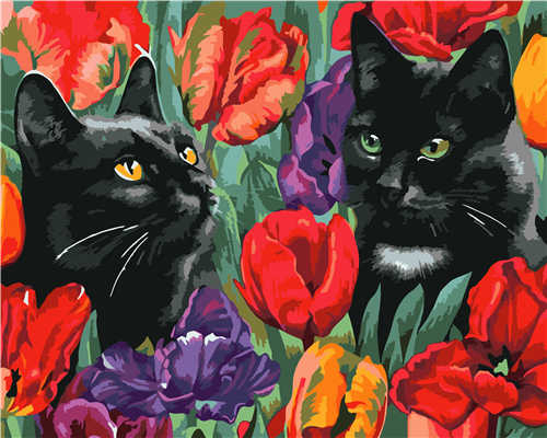 Картина по номерам 40х50 холст на подрамнике акриловые краски Коты в цветах
