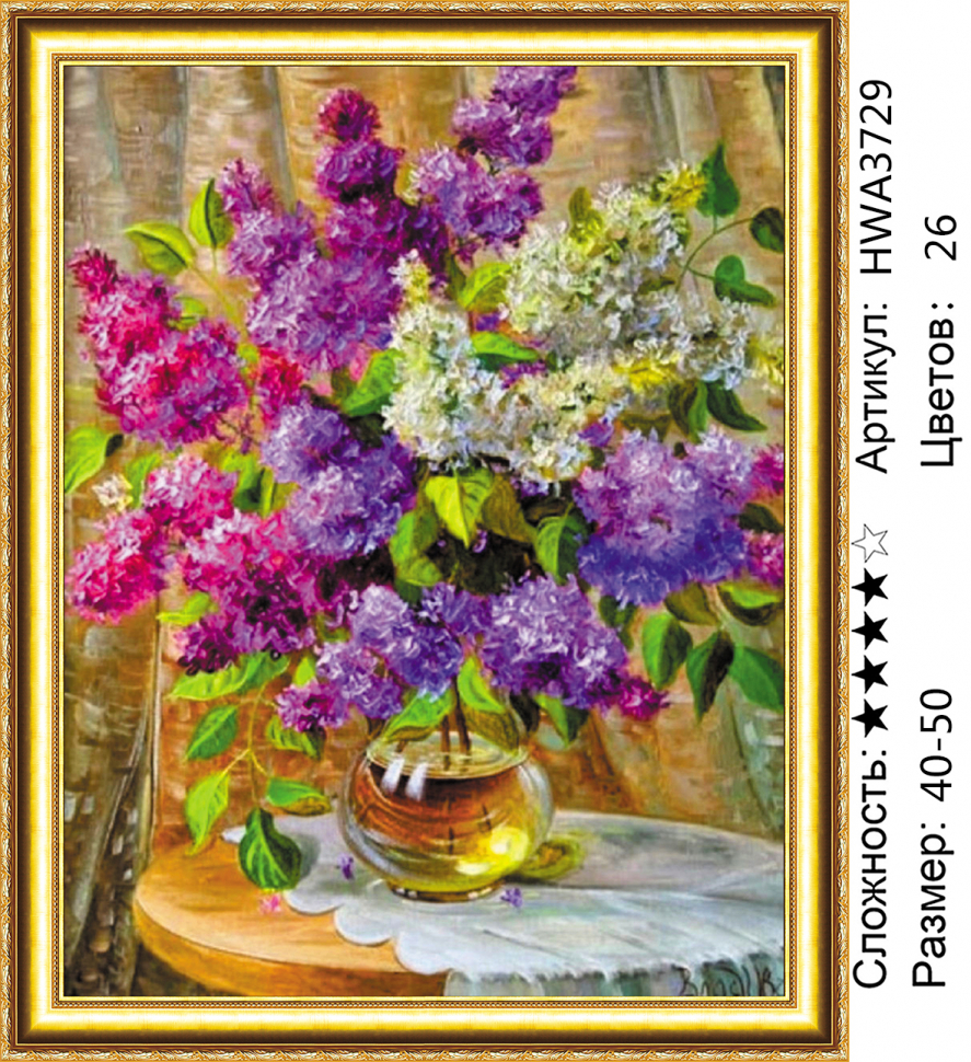 Алмазная мозаика 40х50 полная выкладка холст на подрамнике Сирень в прозрачной вазе