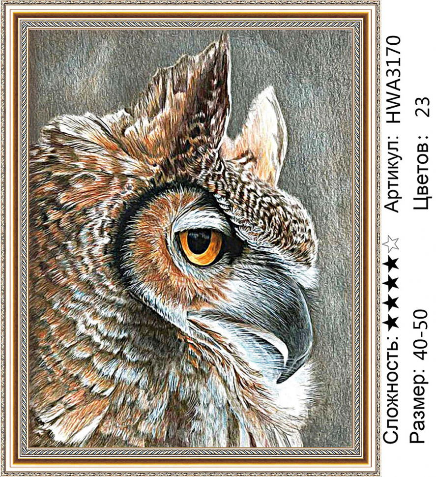 Алмазная мозаика 40х50 полная выкладка холст на подрамнике Мудрый филин