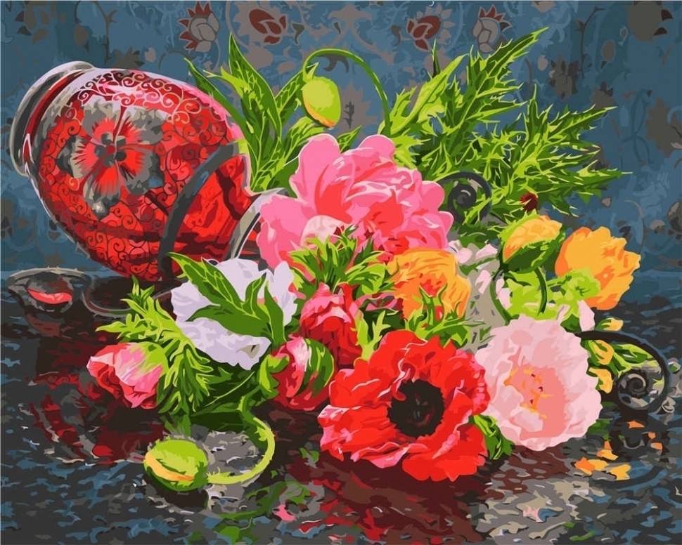 Картина по номерам 40х50 холст на подрамнике акриловые краски Букет в опрокинутой вазе