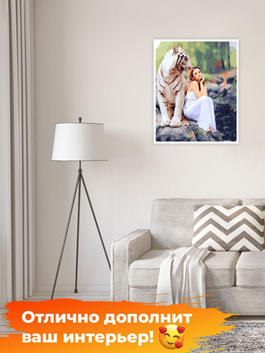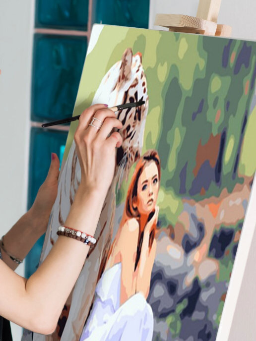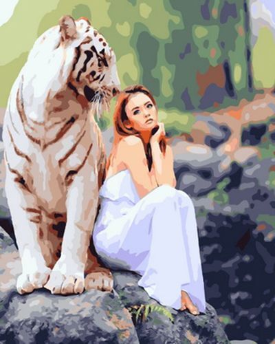 Картина по номерам Девушка и тигр 40х50 см на холсте с подрамником Рисование/Хобби/Творчество/