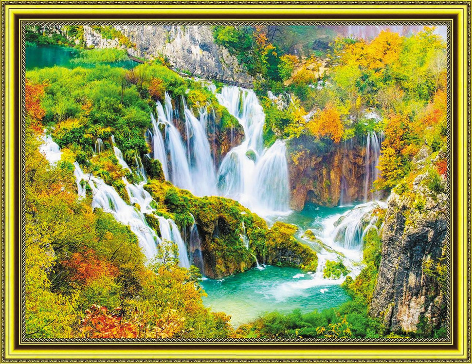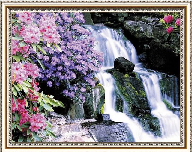 Алмазная мозаика 40х50 полная выкладка холст на подрамнике Цветы у водопада
