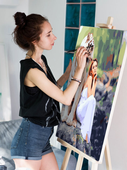 Картина по номерам на холсте 40х50см. "Девушка на фоне ночи" / "Создание портрета" / "Чувственность"
