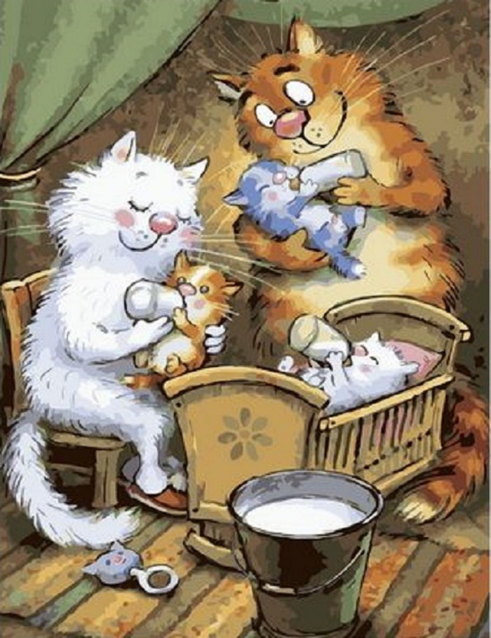 Paintboy Картина по номерам "Синие коты. СЕМЕЙСТВО КОШАЧЬИХ" Рины Зенюк, размер 40х50 см