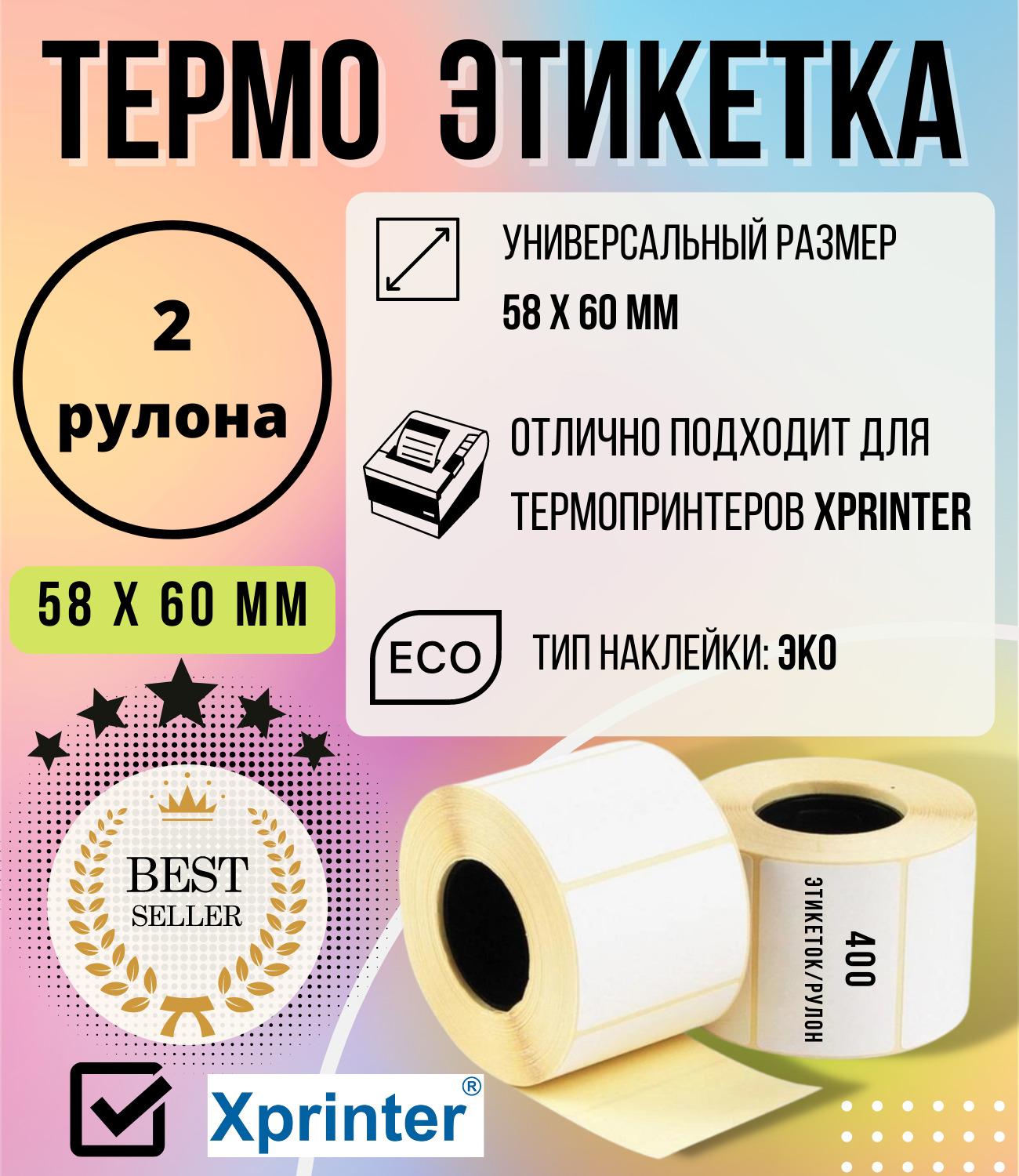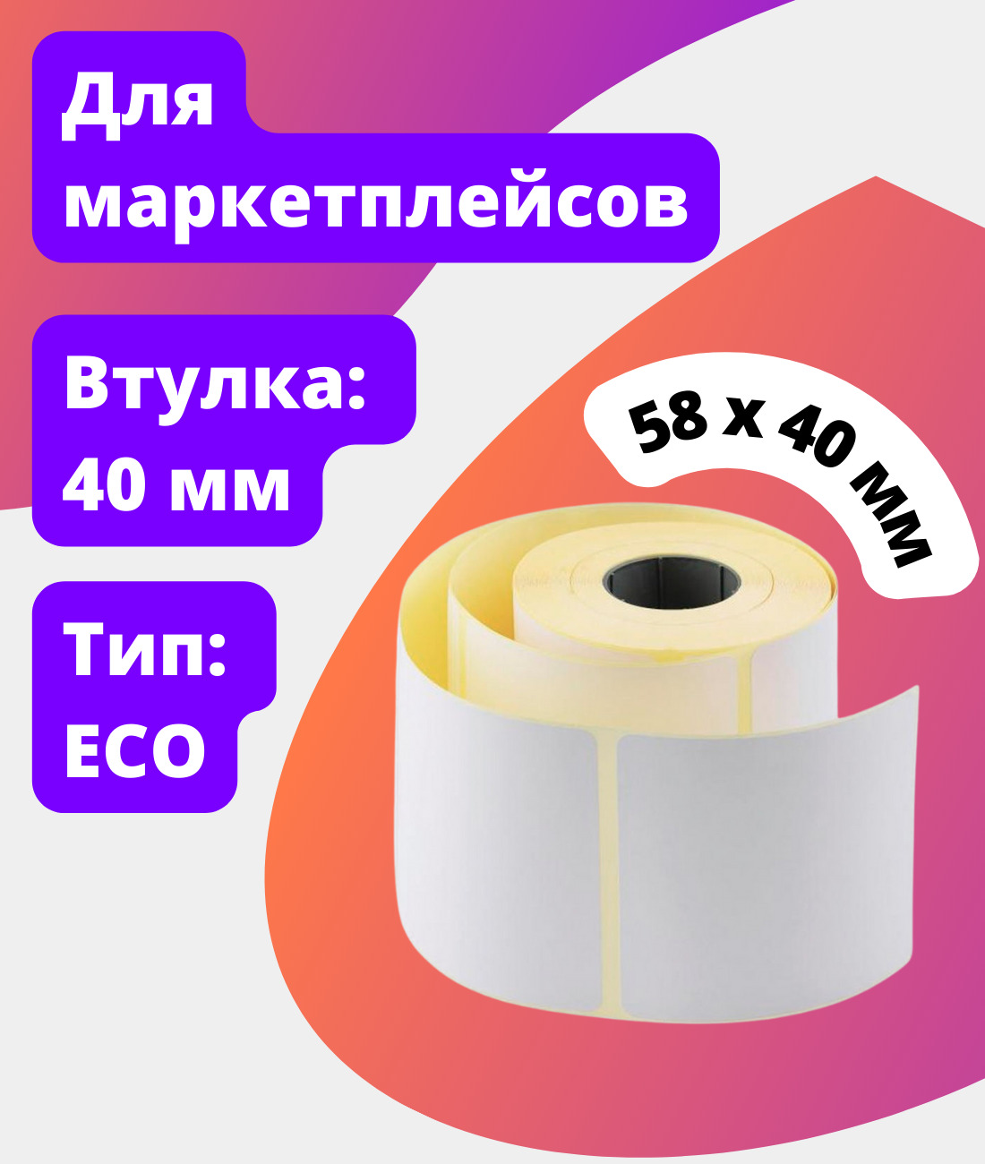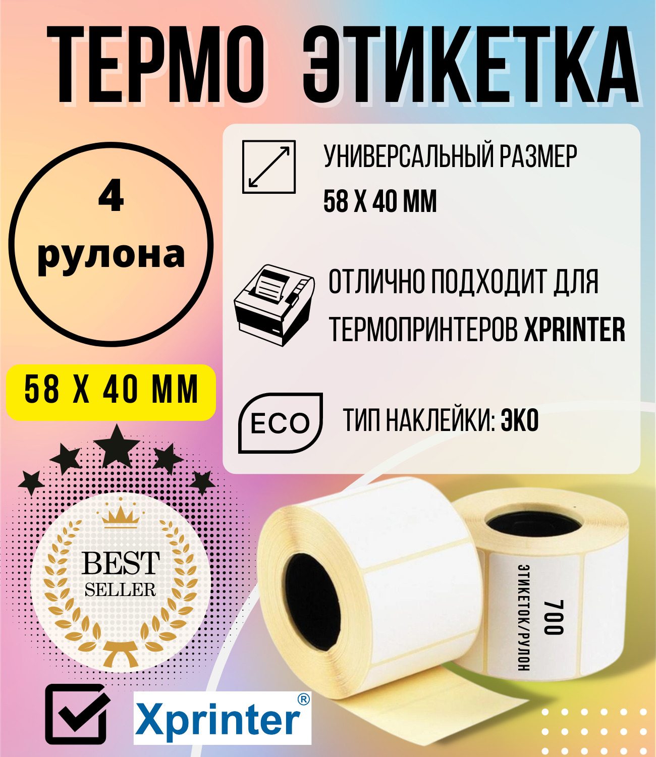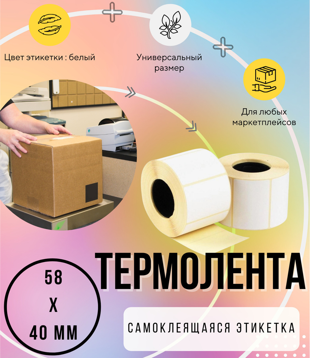 Термоэтикетки 4 рулона - 58х40мм ( 700 шт/рул) самоклеящиеся в рулоне / Термолента для маркетплейсов