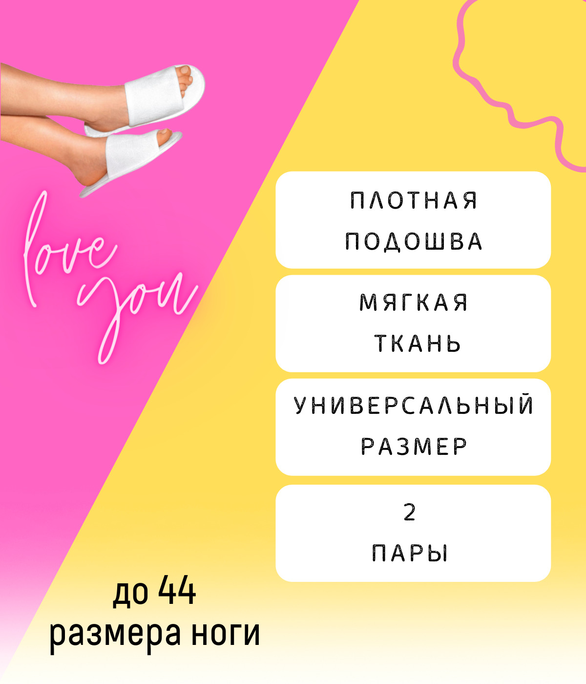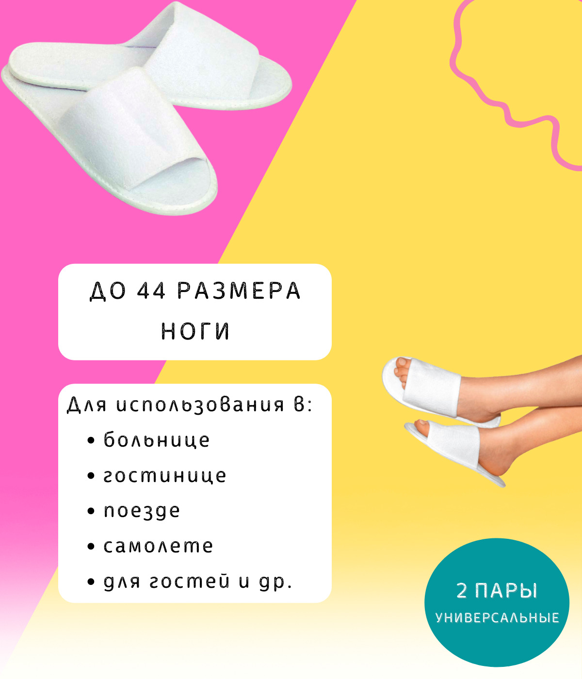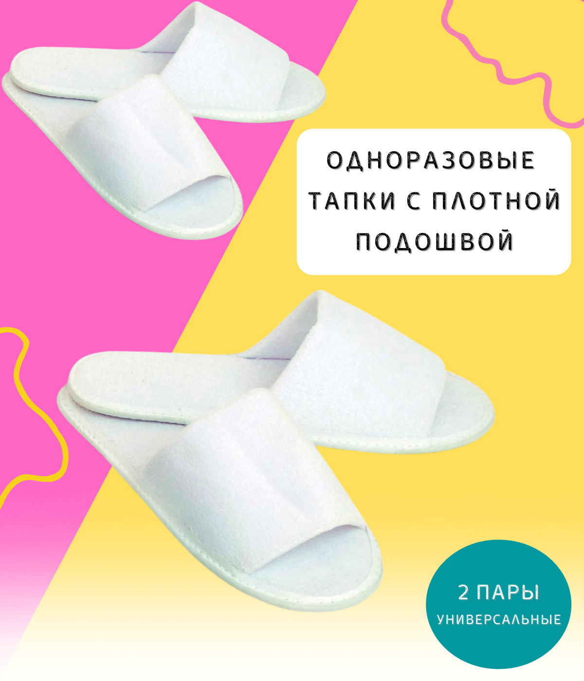 тапочки одноразовые, универсальные, 2 пары / Одноразовые тапки махровые с плотной подошвой, белые
